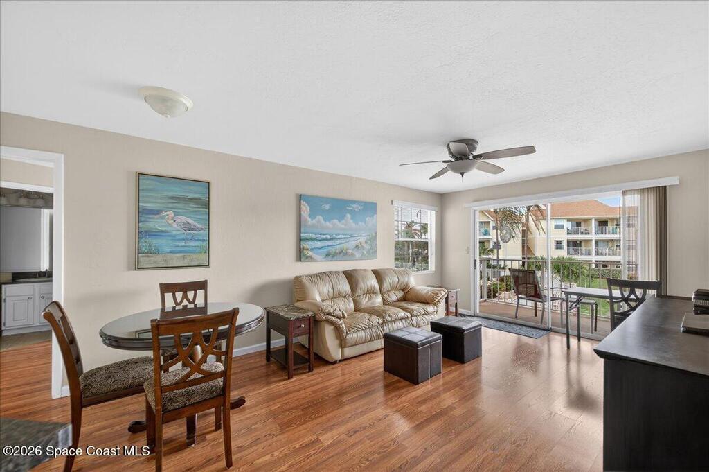 Enjoy relaxed coastal living in this inviting 2BR/2BA condo--perfect as a vacation getaway, full-time residence, or income-producing rental. Step onto your private covered balcony to enjoy refreshing ocean breezes, beautiful pond and pool views, and even a front-row seat to watch spectacular rocket launches along the Space Coast. Inside, the comfortable layout offers easy living and is complemented by a new air conditioner for year-round comfort. The community provides resort-style amenities including a heated pool, hot tub, poolside cabana, and fitness room. Pet friendly and minimum rental restrictionss. This property offers excellent flexibility for both owners and investors. Ideally located within walking distance to the beach, parks, shops, and restaurants. The unit was purchased as a vacation home. It was completely renovated at the time of purchase and has little use and wear and tear. This unit is just waiting for you!