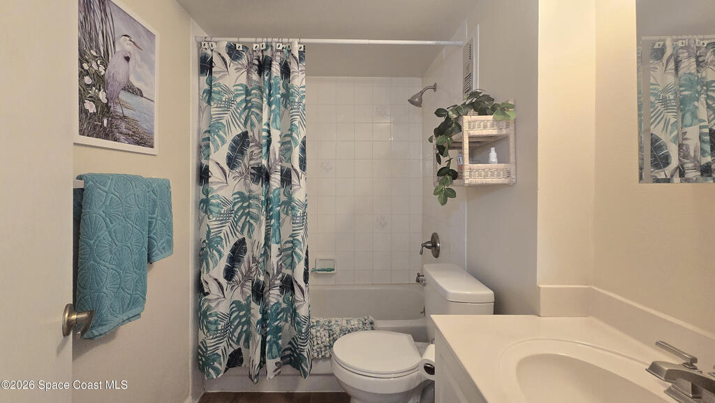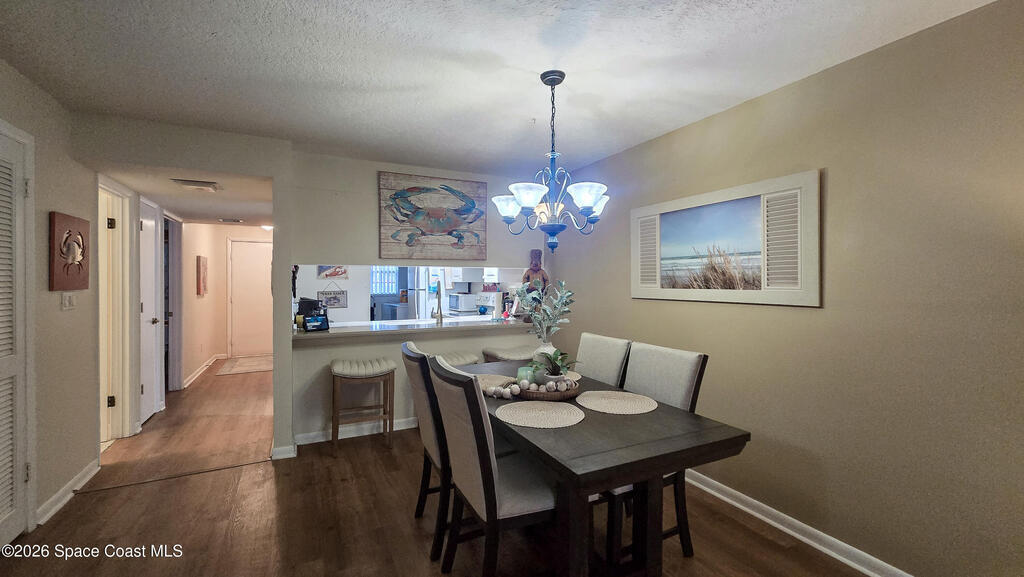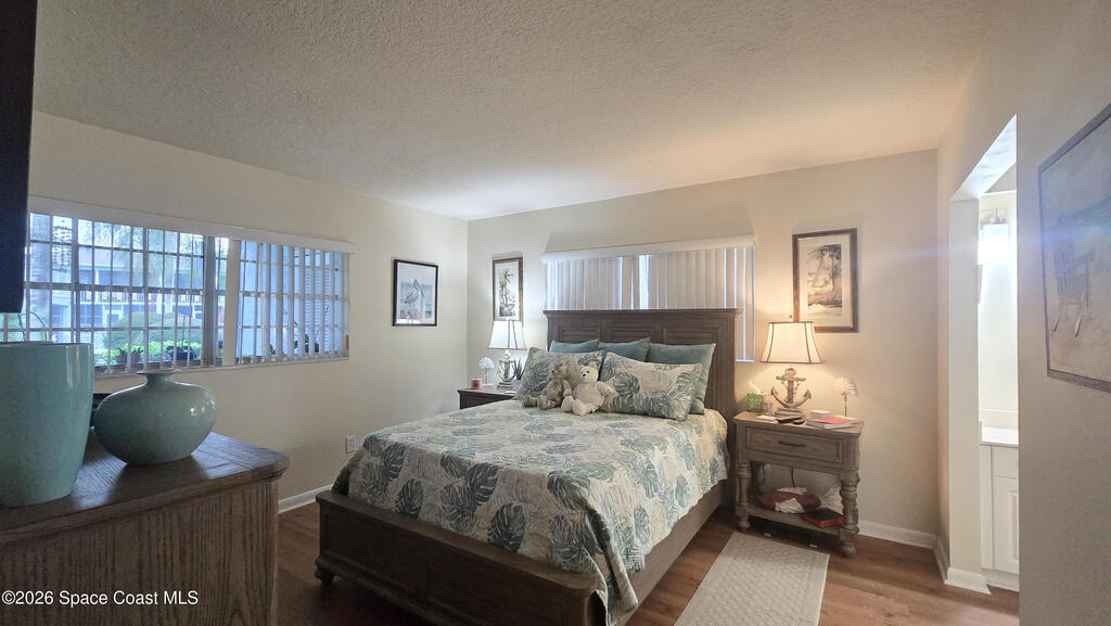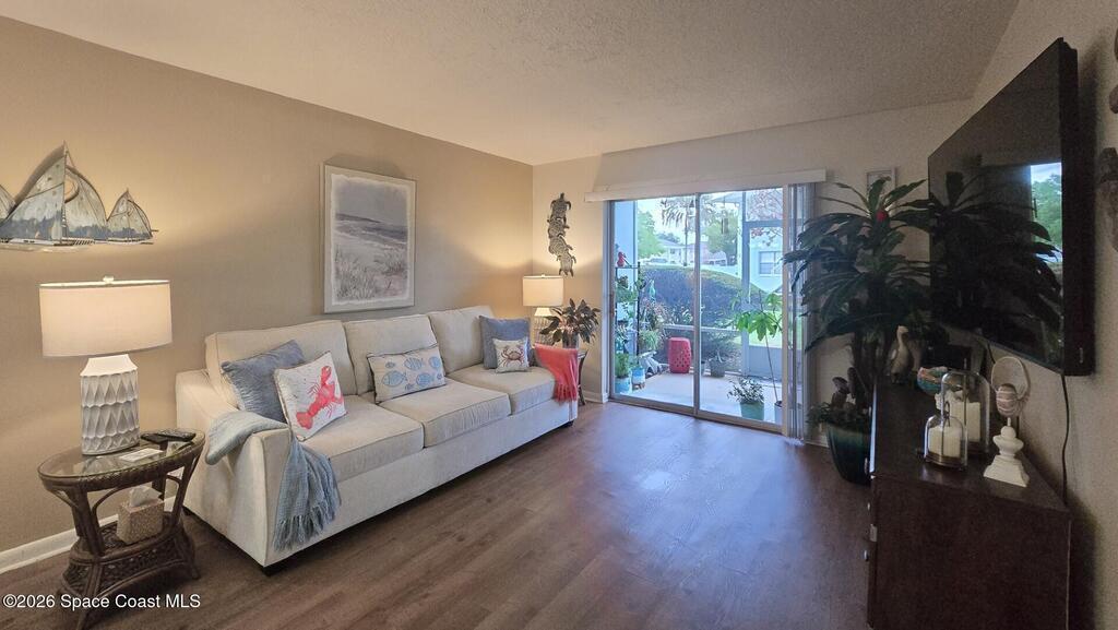 Charming ground-floor 2-bedroom, 2-bath condo with an eye-catching French-inspired baby blue concrete and stucco exterior that offers a bright, inviting presence! Step inside to a light-filled, open layout featuring an open-feel kitchen with a breakfast bar--perfect for casual dining and entertaining. The home also includes updated plumbing, an in-unit washer and dryer, and convenient ground-floor access. Relax on your private screened porch overlooking the pool--ideal for morning coffee or evening unwinding. Enjoy community amenities including a sparkling pool, clubhouse, and sauna, all with low HOA fees. Ideally located near Orlando International Airport and Port Canaveral, plus easy access to theme parks, beaches, and Space Coast rocket launches. Perfect as a primary home, vacation getaway, or investment opportunity!