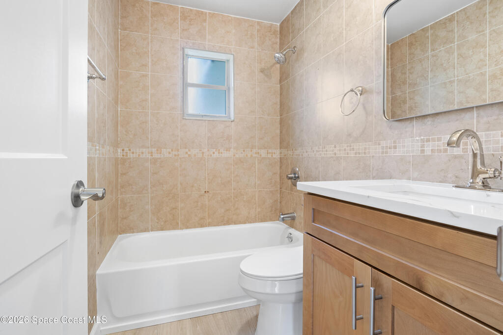 Just a few blocks from the beach, this beautifully updated 3-bedroom, 2-bath POOL home offers the perfect blend of coastal living and modern comfort. Pool maintenance and lawn care INCLUDED. The home features a brand-new kitchen with quartz countertops, soft-close cabinetry, and all new appliances, along with durable porcelain tile flooring throughout. Both bathrooms have been tastefully renovated, and a brand-new washer and dryer are included for added convenience. Step outside to enjoy a large private pool and spacious fenced-in backyard perfect for relaxing or entertaining. Located in a great neighborhood with great schools, you'll love the easy access to the beach, local dining, and everything this coastal community has to offer.