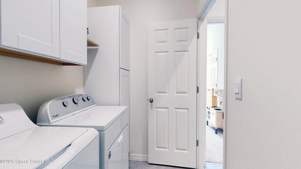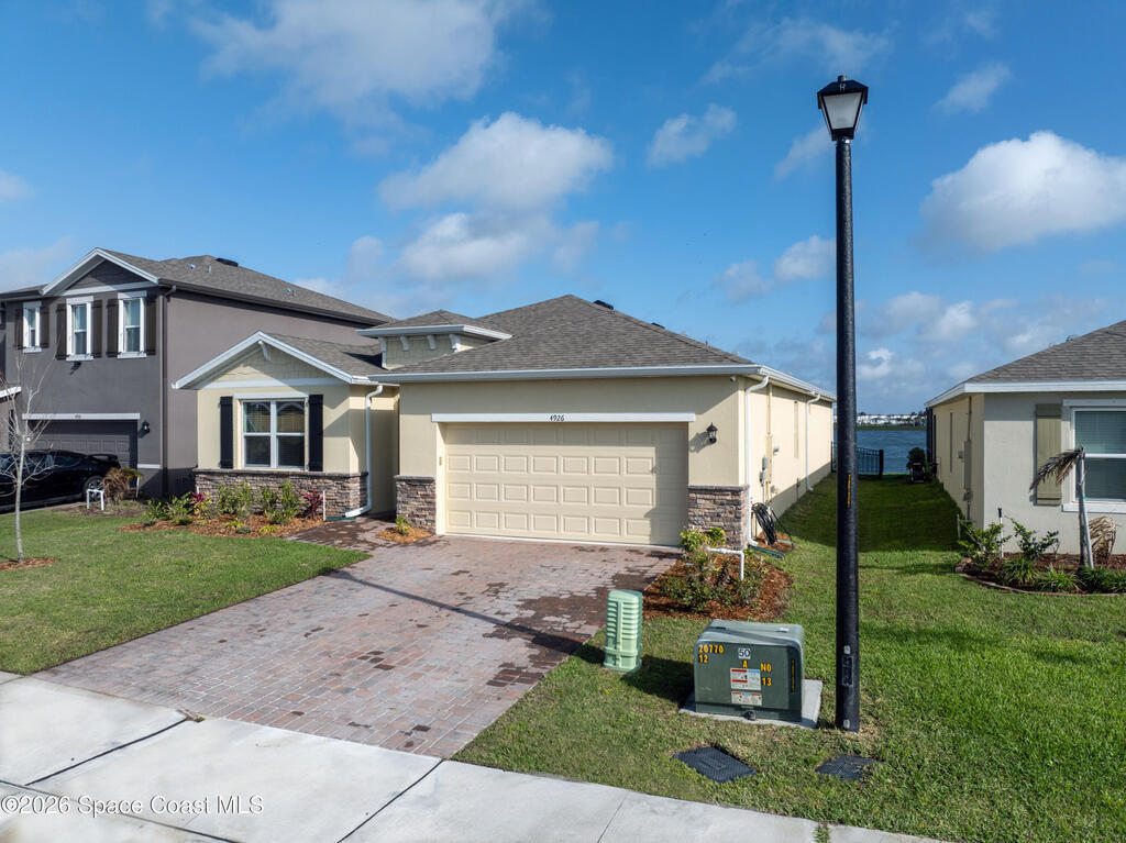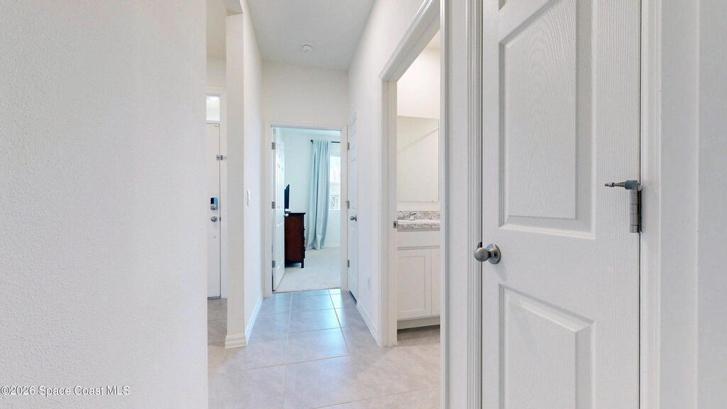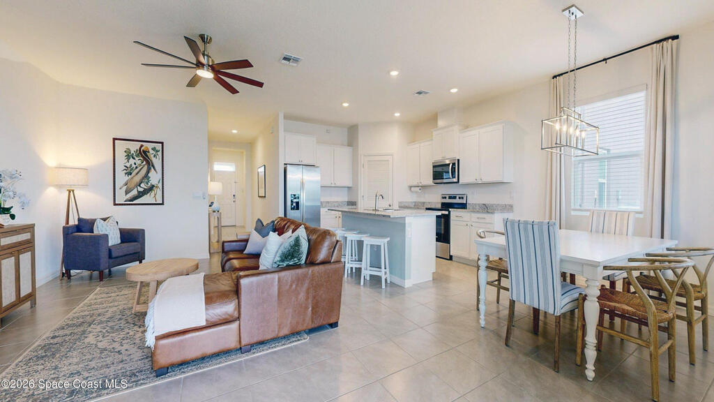 Enjoy your morning coffee and unwind on the screened-in porch overlooking peaceful wooded views and a serene pond--perfect for spotting local wildlife. Located on Florida's sought-after Space Coast, this home offers the ideal blend of tranquility and convenience, just minutes from I-95 for easy commuting to Orlando, beaches, and top employers. Built in 2023 by DR Horton, this move-in-ready home has it all. The open-concept layout features white shaker cabinets, granite countertops, and a full suite of 2023 appliances, all centered around an oversized kitchen island that flows seamlessly into the dining and living areas--perfect for entertaining or everyday living. Soaring ceilings and neutral paint throughout create a bright, airy feel, while the split-bedroom floor plan provides privacy. The oversized primary suite offers a relaxing retreat, and the home features a combination of new plush carpet and tile flooring for comfort and durability. Additional highlights include a spacious