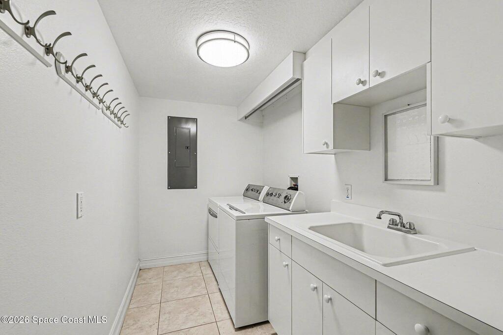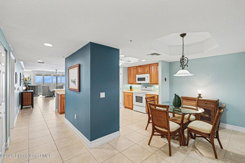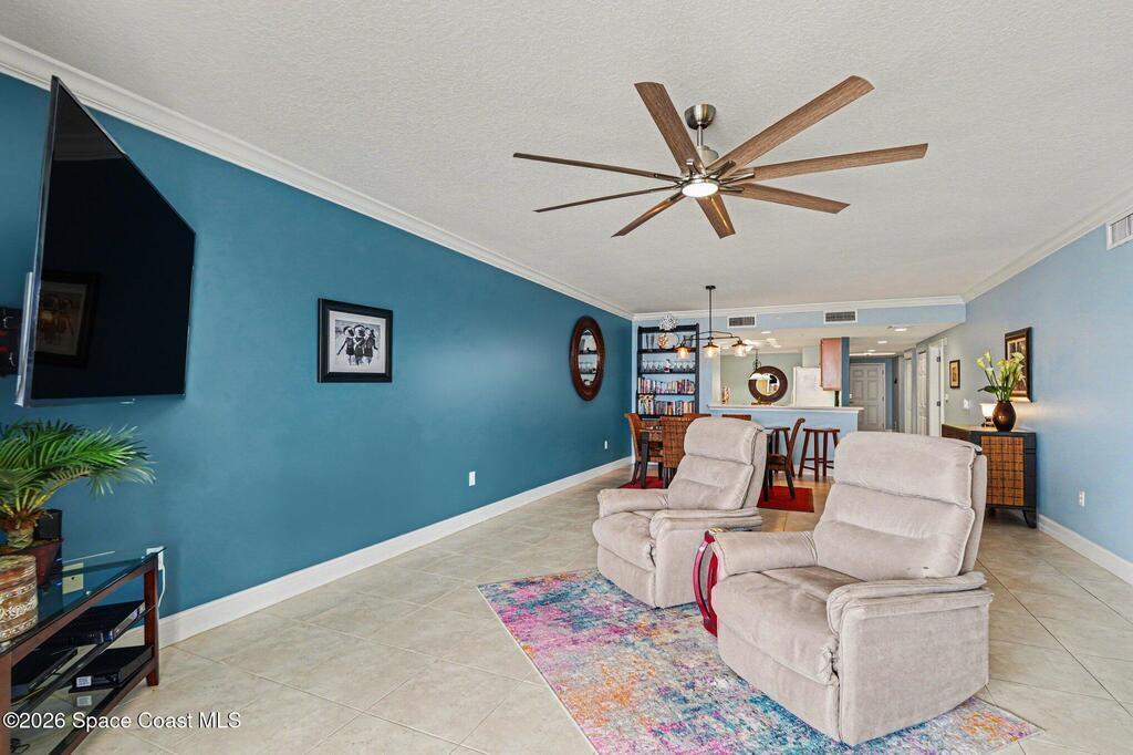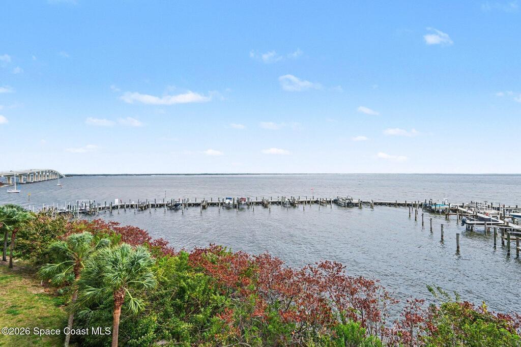 Interested in living The Florida Lifestyle? Then this three bedroom, two bath condo could do the trick! It has a large balcony off the living room and primary bedroom suite with amazing views of the Indian River, rocket launches, the private marina and nature. Condo has neutral tile through out, except for bedrooms, solid hickory cabinets in kitchen and bathrooms, light fixtures and fans installed. Make a few personal touches and call this home or your next vacation spot. Conveying with the condo is a private garage under the building. Complex sits in a perfect location off any busy streets. Community highlights are private marina, large floorplans, dual elevators per building on a back up generator! Community offers several onsite amenities as well. Gated entrances, heated saltwater pool, hot tub, gym, dry sauna, basketball, tennis, and pickleball courts, clubhouse, private marina and social activities. Utilities included in monthly fee are cable, internet & water.