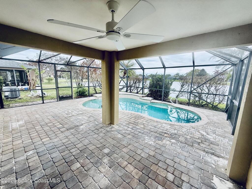 Welcome to your dream home in the desirable Auburn Lakes subdivision in Viera! This beautifully updated 3-bedroom, 2-bathroom single-family residence offers the perfect blend of comfort, style, and serene waterfront living.Enjoy breathtaking lake views right from your backyard, complete with a private pool and a screened porch featuring a ceiling fan--perfect for relaxing or entertaining year-round. Inside, the home is filled with natural light and enhanced by fresh paint, brand-new flooring, and ceiling fans throughout for added comfort.The spacious kitchen is a true centerpiece, boasting brand-new stainless steel appliances, a convenient kitchen island, and plenty of room for cooking and gathering. The open layout flows seamlessly into the living and dining areas, creating a welcoming and functional space.Retreat to the generous primary suite, which features walk-in closets and a luxurious en-suite bathroom with a separate soaking tub and walk-in shower. The second bathroom