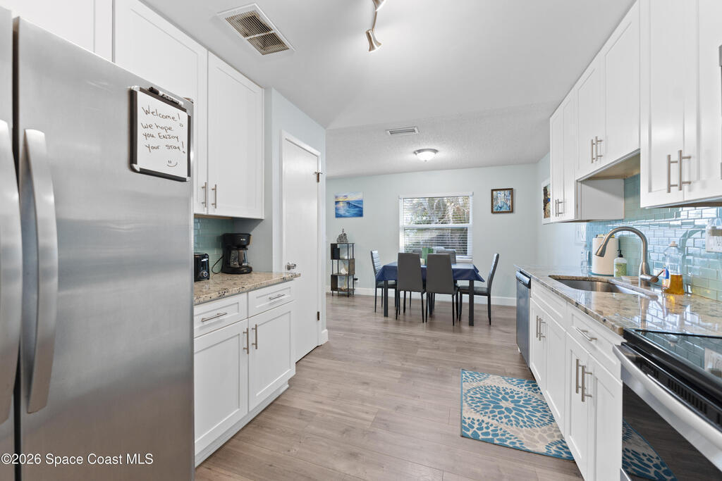 Fully Furnished gem just steps to the beach, shops, and restaurants. Vinyl wood flooring and tile in the bathrooms, no carpet! Stainless steel appliances and gorgeous granite countertops. The unit is fully furnished, just bring your bags and enjoy! The unit is located on a dead end street just a short walk to the beach. Grocery stores, restaurants, and ships all walking distance! The backyard is privately fenced off and includes grill and lounge chairs. Come tour your next beachside getway!