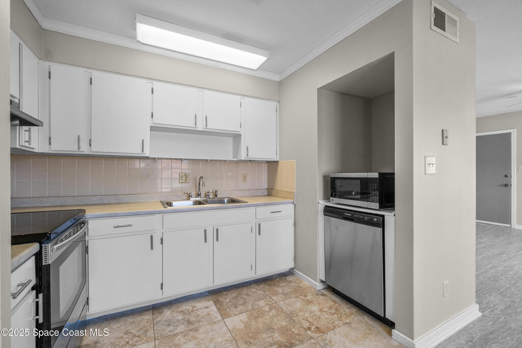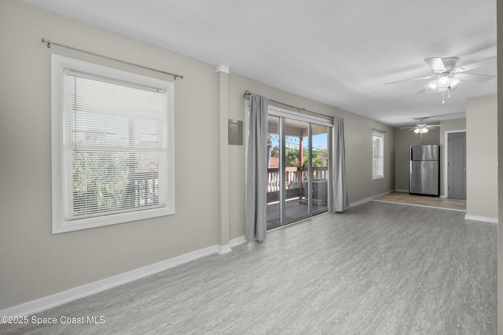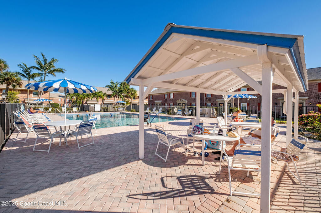 Located just steps from deeded ocean access, this 2-bedroom, 1-bath unit features luxury vinyl plank flooring, tons of cabinets/storage space, and stainless steel appliances. Enjoy the oversized balcony that invites indoor-outdoor living. This well-maintained community has recently undergone extensive renovations-including completion of a new roof, updated plumbing, and an interior stairwell renovation. Several updates are in progress within the community- including new exterior finishes on all buildings for an updated coastal look. Community amenities include a resort-style pool, clubhouse and an on-site laundry facility. This is a must see located in the heart of Indian Harbor Beach- only a short walk to shops, restaurants and the beach!