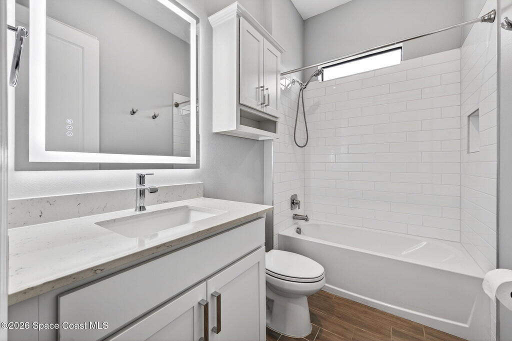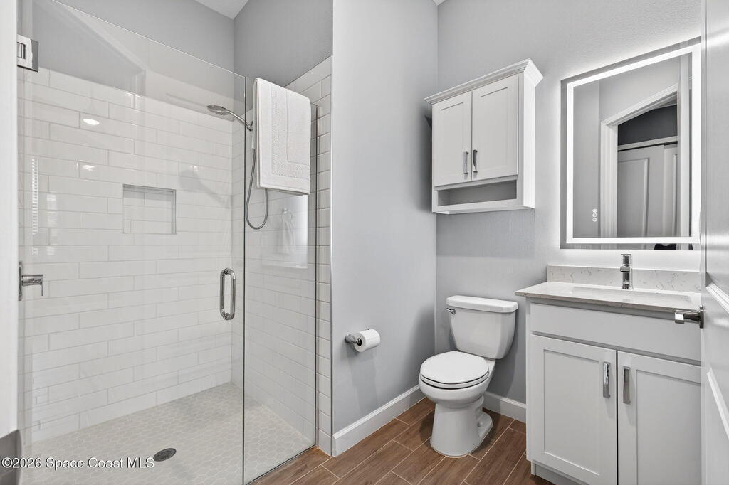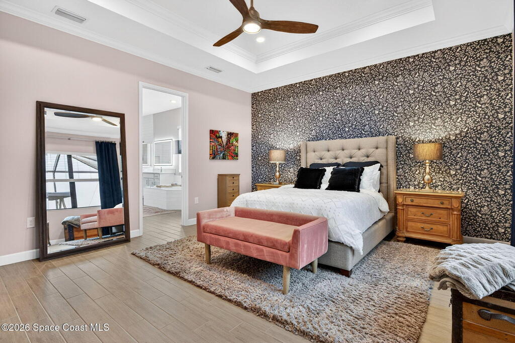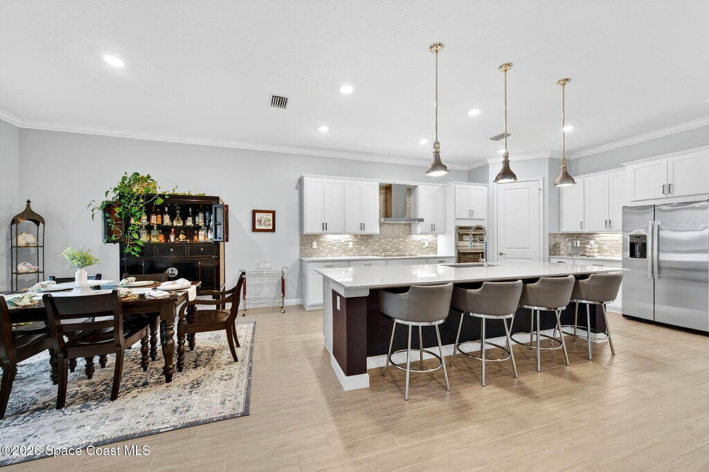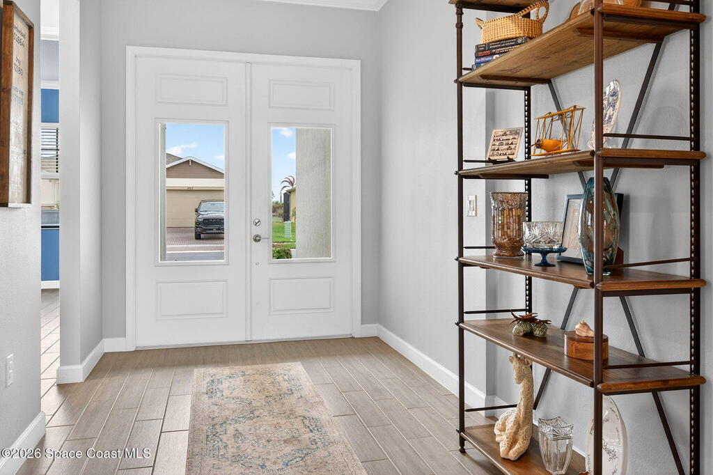 GREAT LAKE VIEW... This 3BR, PLUS FLEX RM (Could be a 4th BR, Guest room, or Office), 3 Full Bath, 3 Car Garage Home with LONG VIEW of the LAKE!!! New in 2022, and Still Looks That Nice, and Better Due to Highly Desired Updates and Upgrades Like the Stylish Full Length Extended Paver Lanai with A DESIRED PICTURE FRAME Rear Enclosure, Tile Plank Flooring Used Throughout Home, Centralized Living RM Area open to Kitchen, Primary Suite and bath with Walk-in Closets w/Professional Grade Organizers, Upgraded Illuminated Mirrors (Heat and Lighting Integrated), Gourmet Kit with Wall Oven, Flat Surface Cook Top, Statement Hood (vented outside), Quartz Counter Tops, Pendant Lighting, Impact Windows. Home has Great LAKE Views from Kitchen, Living Rm, Dining Area, Primary Suite, and Covered Porch!!! Truly a Discriminating Home to Consider!!! All Located with a Upscale Active and Gated 55+ Community Near Costco in Viera!!!