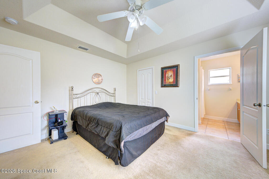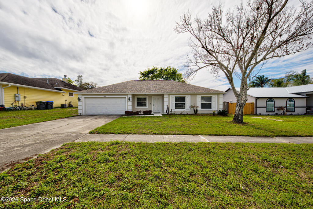 Well Maintained 3 Bedroom 2 Bath 2 Car Garage, Split Plan, Concrete Block Home, Built in 2003 on 0.26 Acres Located in Titusville. This home has much to offer with living room dining room combo, spacious kitchen with wooden cabinetry & corian countertops, breakfast nook, laundry inside, Master suite has walk-in closet and walk-in shower, guest bathroom has shower/tub combo, Tile flooring throughout main living areas except carpet in all bedrooms. Roof Replaced in 2023, Large fenced in (6' wooden privacy fence) backyard, covered lanai. NO HOA, plenty of room to park, trailer, boat or motorhome. This home is worth taking a look at...
