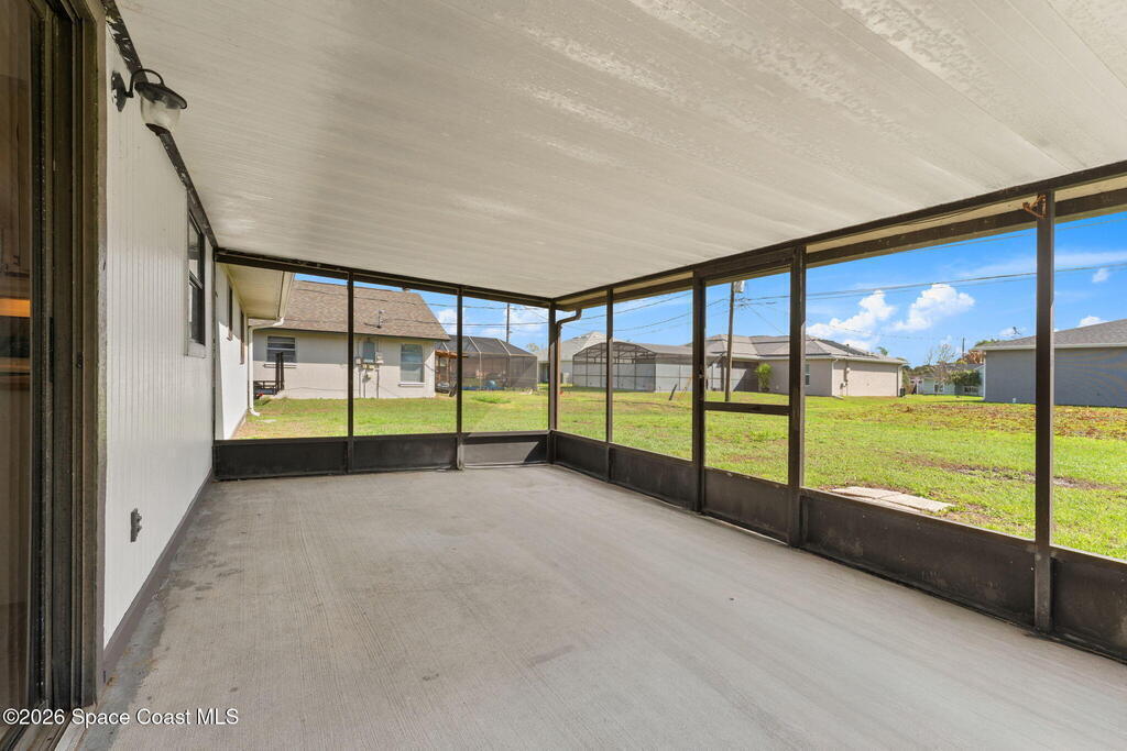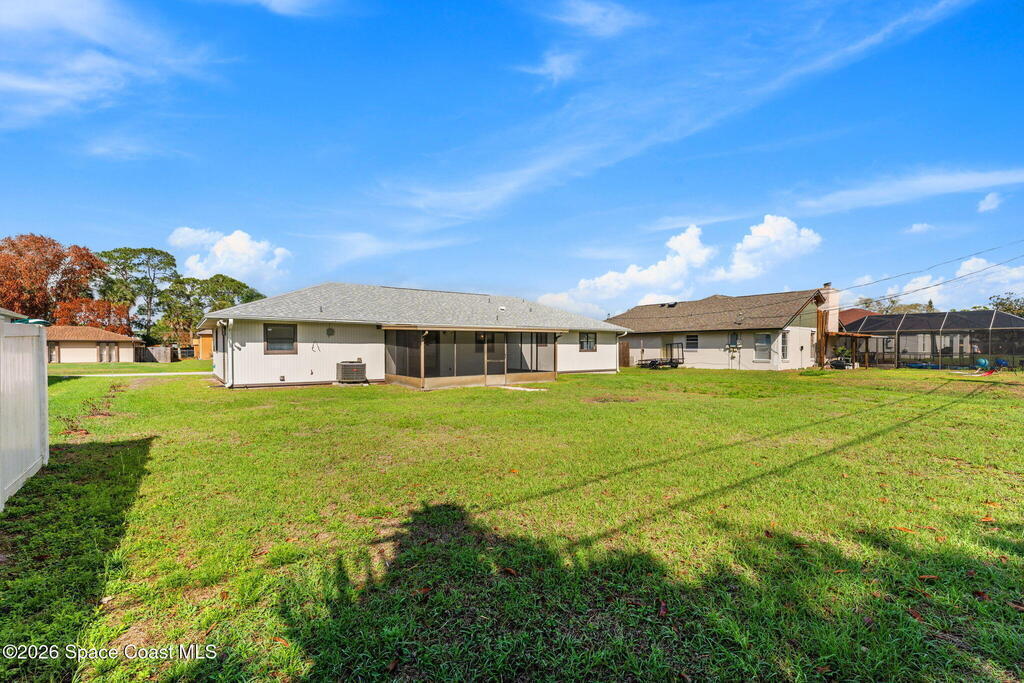 Inside this 3-bedroom, 2-bath, 2-car garage home, you'll find a layout ready for your personal touches. Enjoy the openness of the cathedral ceilings and a bay window in the living room along with a large dining room. This home offers Florida's tropical east-west breeze when the front screen door and rear slider to your screened 12' x 19.5' back porch are open.The yard provides plenty of space for outdoor enhancements with room for pool, garden, workshop, or clean/park your boat using the city water spigot in the back yard. No HOA; fresh interior paint; Dec 2021 Roof; 2022 Water Heater; Keyless entry front door; two double linen closets; and separate generous laundry room.