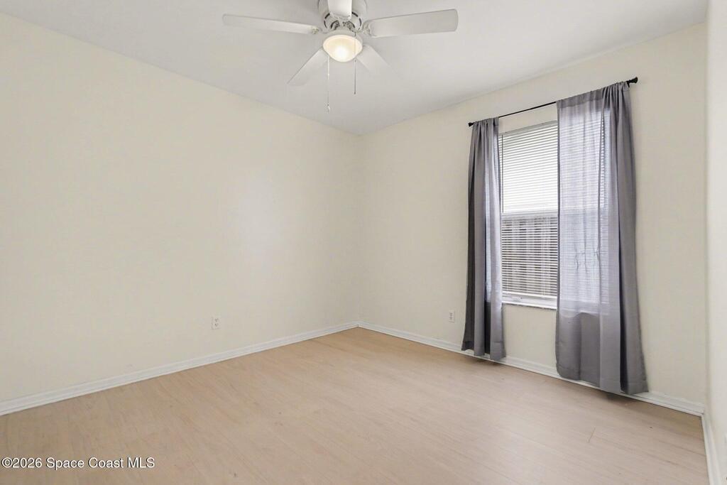 Welcome to this beautifully maintained home in Feather Lakes of Melbourne, where comfort meets privacy and smart updates offer peace of mind. Wood laminate flooring flows throughout-no carpet anywhere-creating a clean, modern feel. The bright kitchen is a standout, featuring a skylight that fills the space with natural light, quartz countertops, white cabinetry, tile backsplash, stainless steel appliances, and a pantry for added storage. The family room includes a cozy breakfast nook and opens through French doors to a tiled, screened lanai-perfect for relaxing or entertaining while overlooking a fully fenced backyard. A drainage canal behind the property provides an added buffer, offering exceptional privacy. The backyard also includes a shed with electricity, ideal for a workshop or extra storage. All bedrooms are equipped with ceiling fans, and the owner's suite features a walk-in closet. Major updates include a 2019 metal roof, 2020 HVAC system, and updated plumbing in 2022.