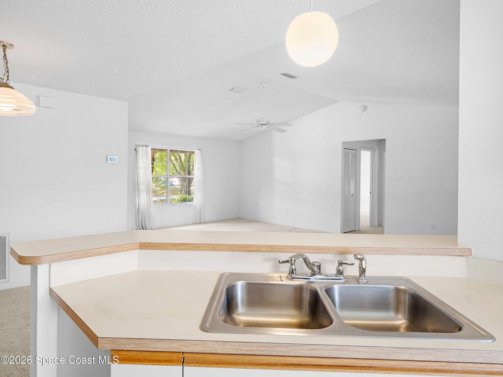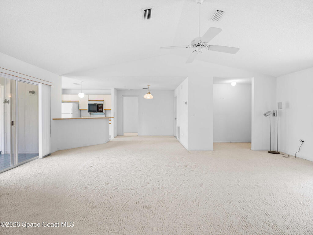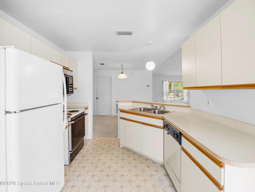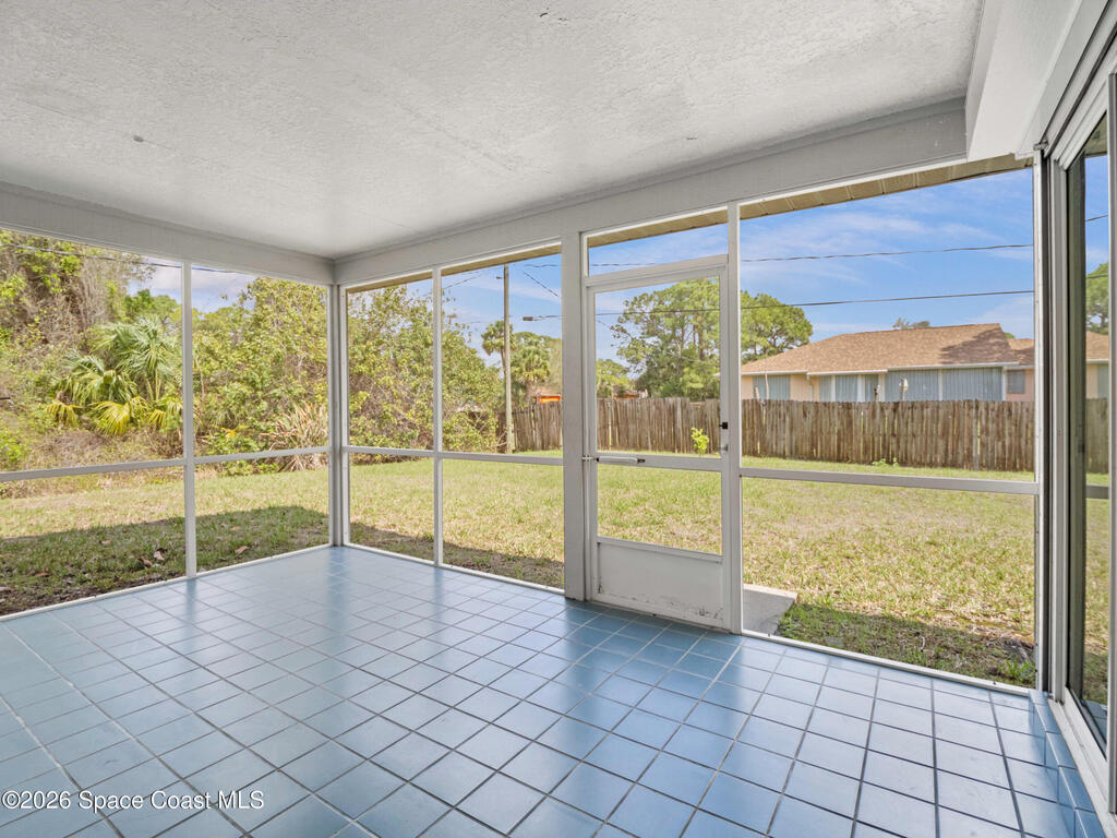 This home offers a warm, inviting feel with a layout designed for easy, comfortable living. The main living and dining areas flow into an open kitchen with abundant counter space, a breakfast bar, an eat-in nook, and a large pantry, creating a practical space for cooking and gathering. The split floor plan provides privacy, with a primary suite featuring a walk-in closet and an updated bath. High ceilings and generous windows fill the home with natural light. Step out to the screened porch overlooking a large fenced backyard with room for pets, gardening, play areas, or future outdoor additions. Additional highlights include a newer AC unit, a slightly older roof, indoor laundry, and a two-car garage. Thoughtfully maintained and move-in ready, this home sits in a quiet SE Palm Bay neighborhood close to schools, shopping, I-95, and the Bayside Lakes corridor--offering a comfortable blend of space, convenience, and relaxed Florida living