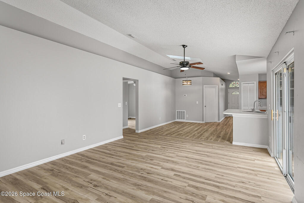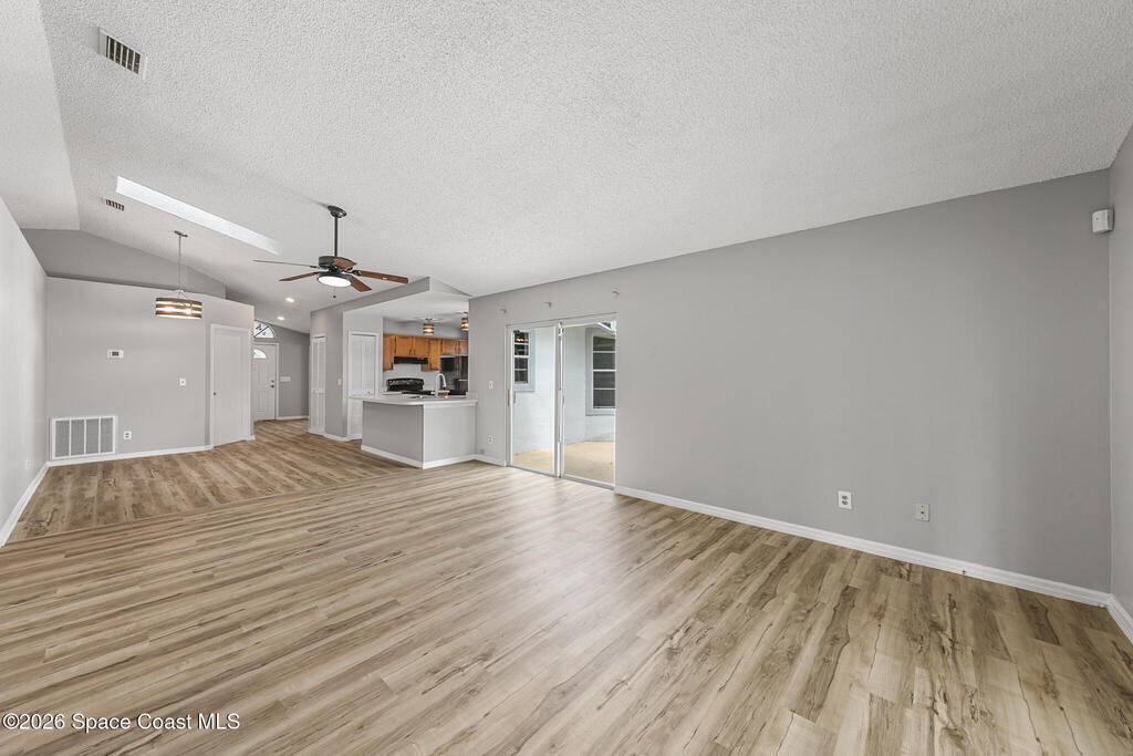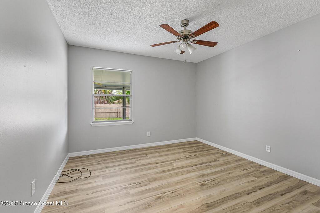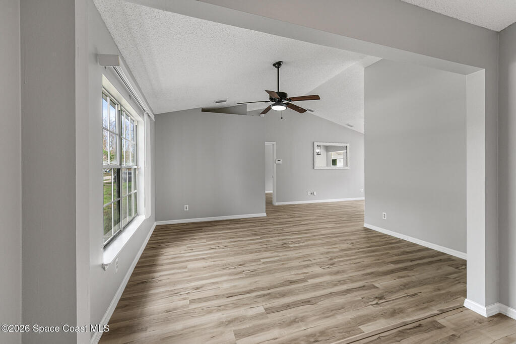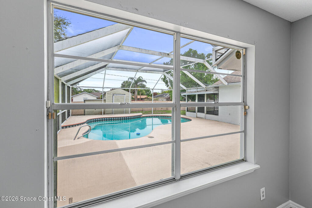 New to the market -- this freshly updated Palm Bay pool home is one of the best values currently available! The seller is offering a $5,000 closing cost credit to the buyer with an accepted contract closing within 30 days.This spacious 3-bedroom, 2-bath home with a versatile bonus room offers incredible flexibility along with two separate living areas, giving you plenty of room for entertaining, relaxing, working from home, or creating a playroom or guest space.Step inside to a bright and airy open layout featuring vaulted ceilings and luxury vinyl plank flooring throughout. The main living space flows seamlessly into the dining area, where beautiful bay windows overlook the sparkling blue pool, bringing in natural light and creating the perfect backdrop for everyday living.The kitchen sits at the heart of the home, complete with a breakfast bar and plenty of room to gather with family and friends. Several rooms throughout the home enjoy peaceful views of the pool, adding to the