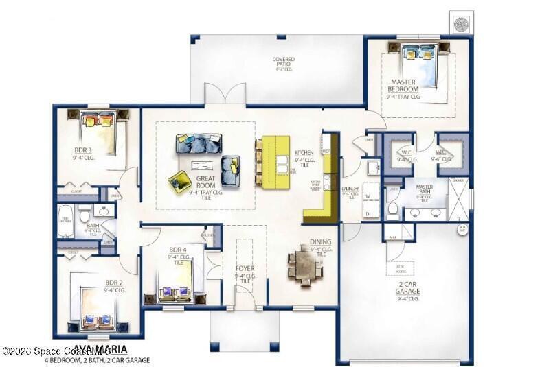 MOVE IN READY!! Welcome to your dream home! This elegant four-bedroom, two-bath residence perfectly blends style and functionality, creating a warm and inviting atmosphere. Step inside to discover an expansive layout with 9.4-foot ceilings and stunning Trey ceilings in the living area and primary bedroom. Durable porcelain tile flooring adds to the contemporary charm. The heart of the home is the kitchen, featuring a spacious island for gatherings, granite countertops, sturdy wood cabinets, and stainless-steel appliances--ideal for culinary enthusiasts. Additional highlights include IMPACT windows for peace of mind, generous closets, and covered porches in both the front and back. The 8-foot interior doors in the living area add sophistication to the overall design. Thinking of a POOL? The septic is in the front! Experience comfort and elegance in this exceptional property!!