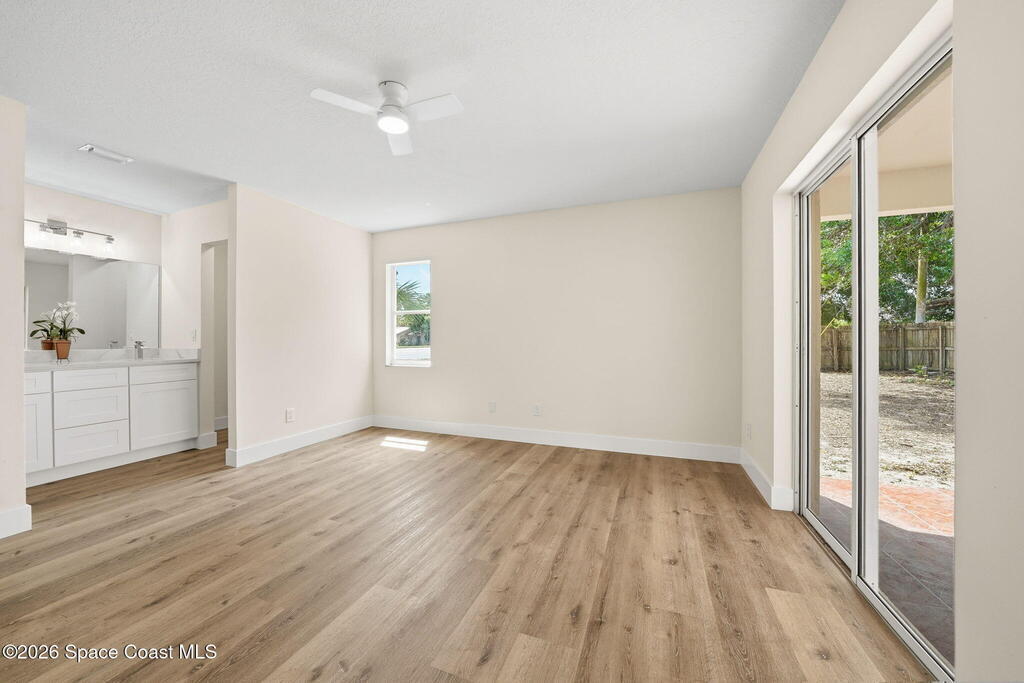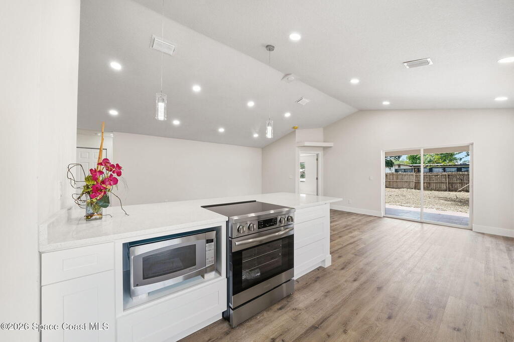 Welcome to West Melbourne with NO HOA. Recently renovated, a shortened list of some major enhancements include: new roof, water heater, a/c, flooring, modern cabinets, etc...We can't wait to show off what we've been up to inside! Cathedral ceilings add to the great room, creating an open, beautiful living space. This property will be fully fenced and features a 2 car garage with a spacious driveway accommodating up to four additional vehicles. Nicely rated school systems in this area. Minutes from shopping, dining, and entertainment, approximately a 10 minute drive to the beach. It's almost ready! Some final touches in progress, you are welcome to come in, please pardon some possible dust though.
