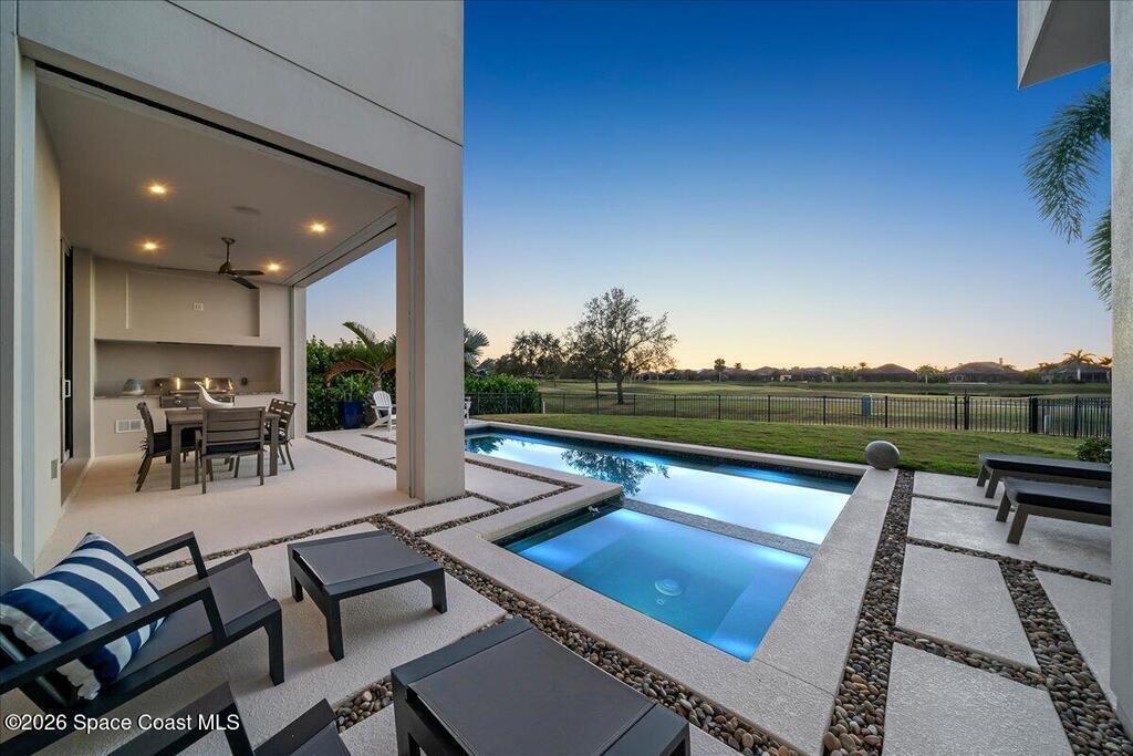Nestled in the Modern Duran community, this stunning 5BD,, 4BA pool home is the epitome of contemporary luxury. Designed with clean lines & high end finishes, this property offers a seamless blend of elegance and functionality. As you step inside, you're greeted by an open-concept floor plan bathed in natural light from the oversized windows. The spacious living area flows effortlessly into the gourmet kitchen, complete w/ quartz counters, customs cabinetry SS Bosch appliances, and a large island perfect for entertaining. The primary suite is a private retreat, featuring a spa-like en-suite bath with soaking tub, walk in shower & dual vanities. The add'l BDs are generously sized, offering versatility for family, guests or a home office. Outside, the backyard oasis awaits, highlighted by a sparkling pool & spa with spacious patio complete with a summer kitchen, dining area that has retractable screens. This home is not just a residence it's a lifestyle. All impact windows and doors.