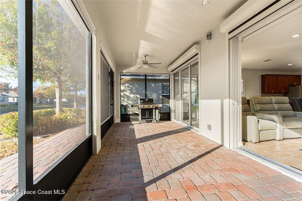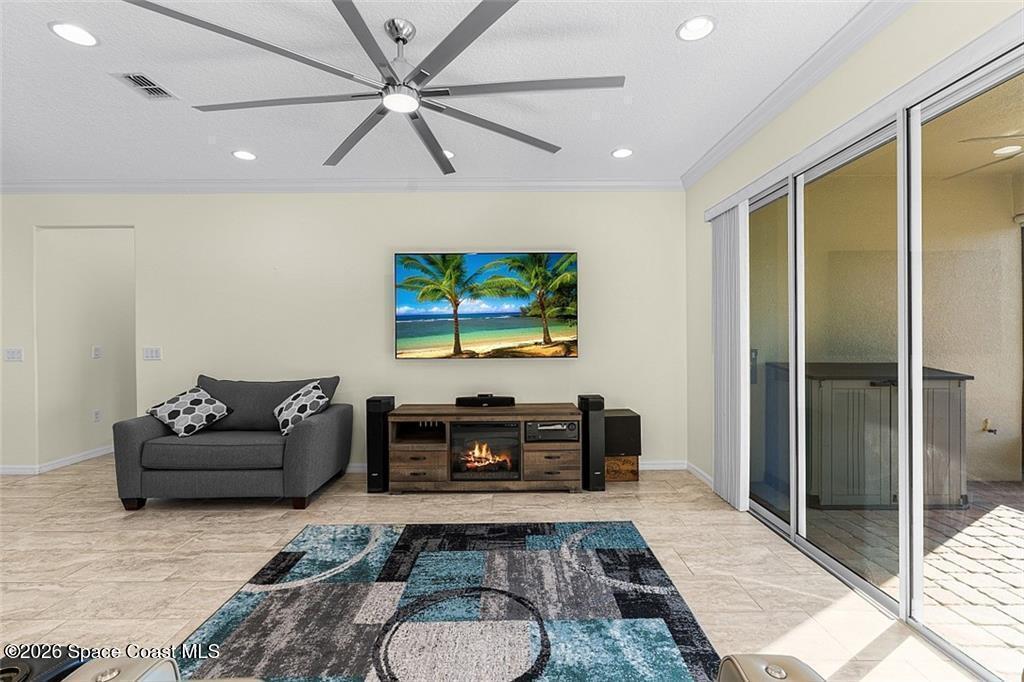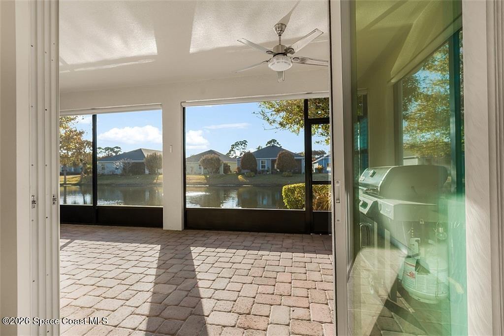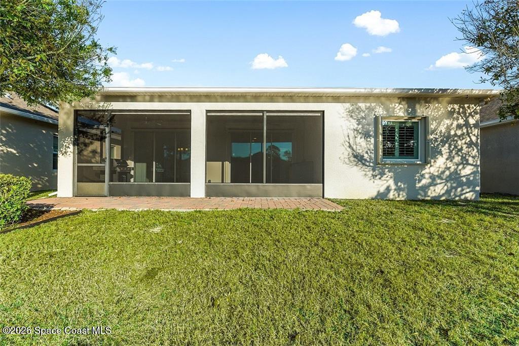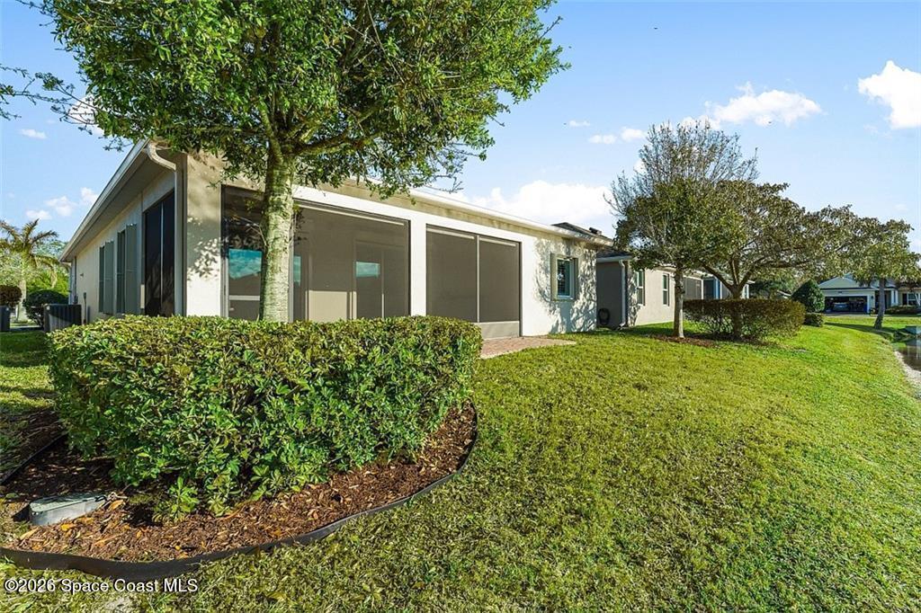 Lakefront living in the gated Sandcrest community of Sebastian an intimate neighborhood of approximately 100 homes offering privacy, low-maintenance living, and a true sense of community. Built in 2017, this 3BR/2BA home offers 1,844 sq ft with tile flooring throughout main areas, newer carpet in bedrooms, crown molding, plantation shutters, and tray ceiling in the primary suite. Custom kitchen features granite countertops, wine-glass storage, and newer LG appliances including an induction range. Enjoy peaceful pond views from the expanded screened paver patio, complete with remote-controlled Kevlar hurricane protection, privacy shade, and generator hookup--ideal for year-round Florida living. Additional features include full hurricane protection and move-in ready finishes throughout. Low HOA includes lawn care, irrigation, gated entry, clubhouse, and heated pool. Conveniently located near Sebastian Inlet, riverfront dining, shopping, medical, and beaches. Golf cart and pet friendly.