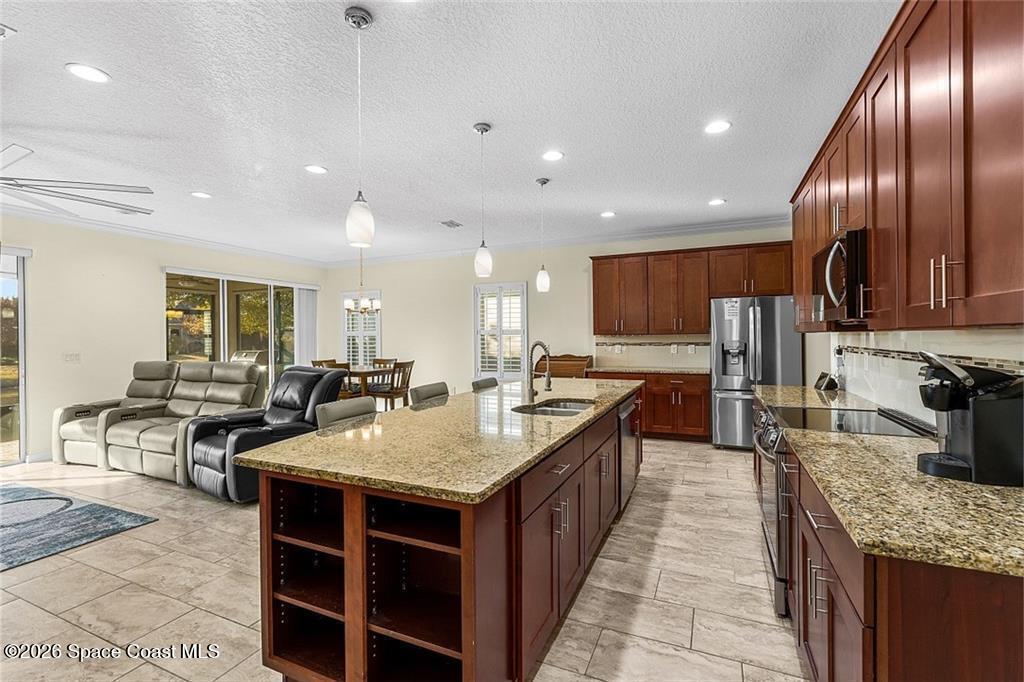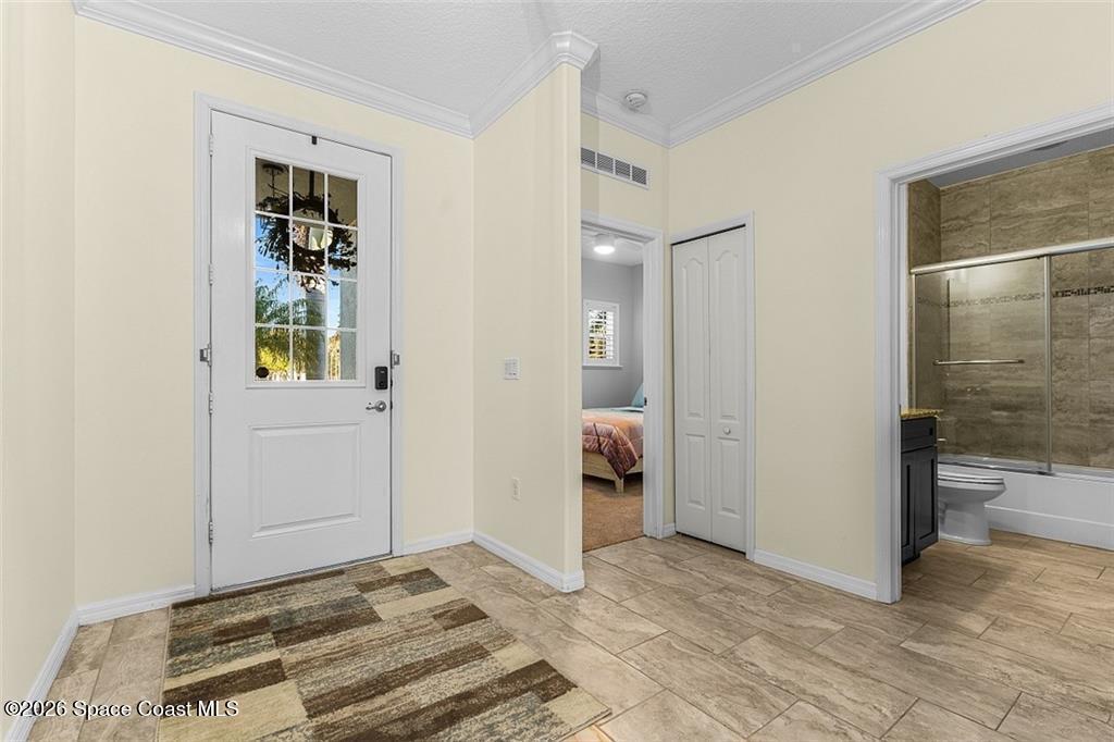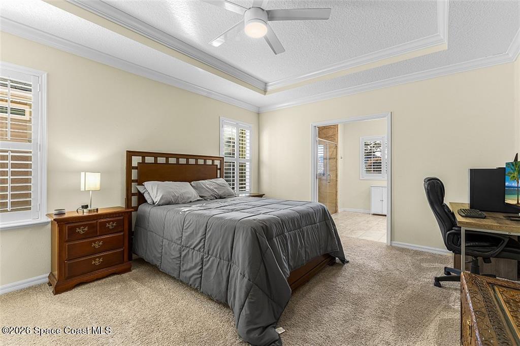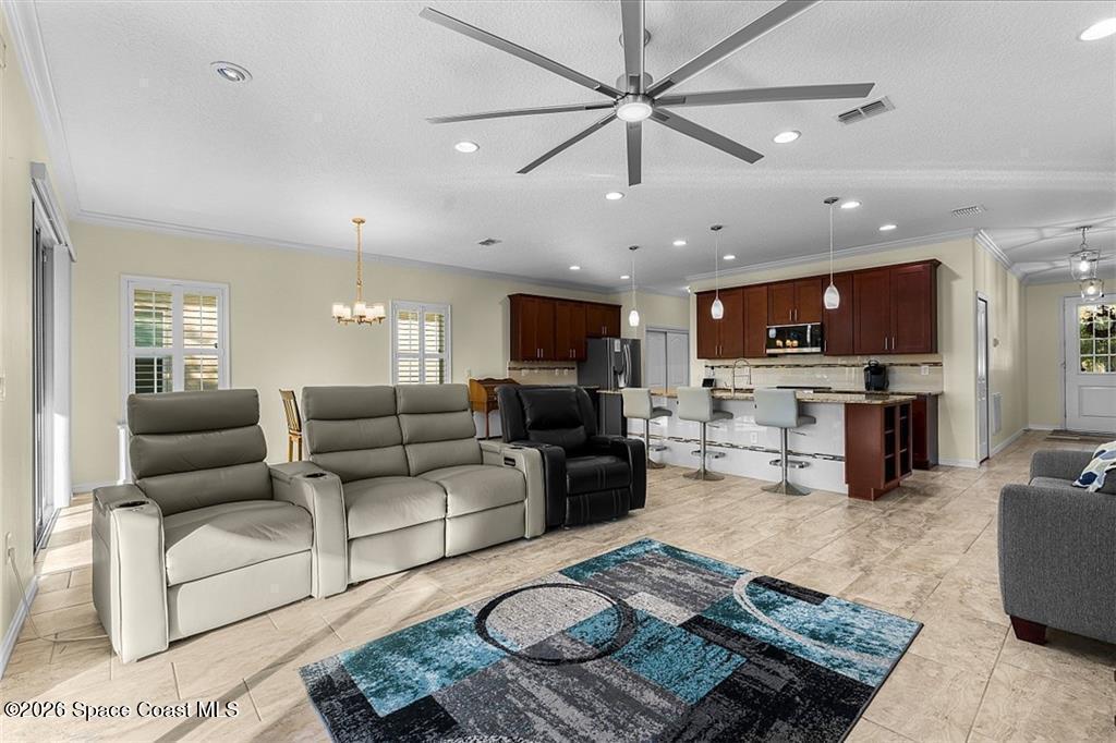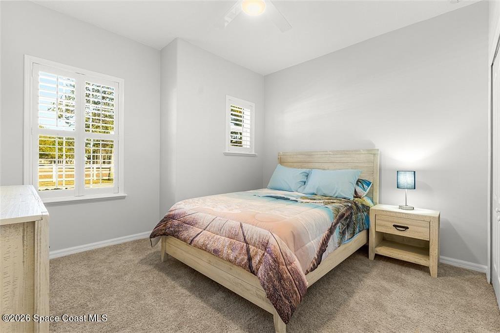 Lakefront living in the gated Sandcrest community of Sebastian an intimate neighborhood of approximately 100 homes offering privacy, low-maintenance living, and a true sense of community. Built in 2017, this 3BR/2BA home offers 1,844 sq ft with tile flooring throughout main areas, newer carpet in bedrooms, crown molding, plantation shutters, and tray ceiling in the primary suite. Custom kitchen features granite countertops, wine-glass storage, and newer LG appliances including an induction range. Enjoy peaceful pond views from the expanded screened paver patio, complete with remote-controlled Kevlar hurricane protection, privacy shade, and generator hookup--ideal for year-round Florida living. Additional features include full hurricane protection and move-in ready finishes throughout. Low HOA includes lawn care, irrigation, gated entry, clubhouse, and heated pool. Conveniently located near Sebastian Inlet, riverfront dining, shopping, medical, and beaches. Golf cart and pet friendly.
