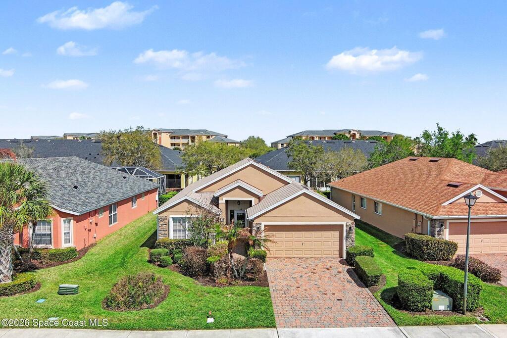 Welcome to Heritage Isle, one of Viera's most coveted 55+ gated communities. This light-filled 3 bedroom, 2 bath home offers 2,034 square feet of comfortable, elegant living. The eat-in kitchen invites casual mornings, while the sun-drenched bonus room with wraparound windows and built-in wine bar is the perfect spot to unwind, entertain, or soak in the Florida sunshine year-round. Accordion and Bahama storm shutters provide peace of mind and privacy. You can rest easy as major systems are newer: roof 2024, HVAC 2021, W/H 2022.Beyond your front door, resort-style living awaits with an expansive clubhouse featuring a cafe, heated pool and spa, tennis and pickleball courts, bocce ball, shuffleboard, a fitness center, and a vibrant social calendar. Ideally situated near top healthcare facilities, golf courses, premier shopping, and dining. With easy access to I-95, Orlando and Port Canaveral are less than an hour away. Pack the Sunscreen less than 30 Minutes to World Famous Cocoa Beach!