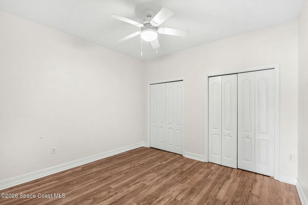 Welcome to easy Florida living in this move-in ready 3-bedroom, 2-bath ground-floor condo in the desirable Hidden Glenn Condo community. Offering over 1,500 square feet, this light-filled unit features an open floorplan with seamless flow between the kitchen, dining, and living areas--perfect for everyday living and entertaining. Enjoy low-maintenance ceramic tile and wood-look laminate flooring throughout. The spacious layout includes a private utility room with washer and dryer for added convenience. This unit also comes with a detached 1-car garage plus an assigned exterior parking space. Relax by the community pool or enjoy the quiet surroundings while still being centrally located in Merritt Island. Just minutes to the beaches, Port Canaveral, and SR 528 for an easy commute to Orlando in about 40 minutes.