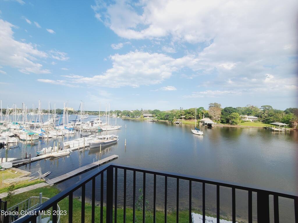 Come see this fully furnished multi-million dollar waterfront view. Bring your yacht and rent a slip at the marina. $2,550 a month for a full year lease starting May. One month lease at $2,900 plus utilities each month if under (3) months, $2,600 for 6 month rental not including high season. High season rates are higher. December to April 2027. A newer 2 story townhome with a 1 car, garage, 2 bedrooms, 2 & 1/2 baths, nicely furnished. Condo features, quartz counter tops, custom cabinets, wood like vinyl floors, tastefully decorated. This 2 story townhouse has a king size bed and queen size bed in the 2nd room. 2 beautiful balconies looking over the inlet leading to the INDIAN RIVER. Location location only miles to downtown Melbourne, close to Mall, restaurants, International airport and so much more.