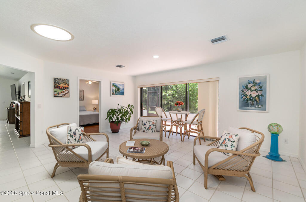 Welcome to this expanded Austin model, perfectly positioned within a resort-style country club community where exceptional amenities and an active Florida lifestyle come together. This home offers plenty of room for overnight guests or entertaining, and delivers both comfort and flexibility in one beautiful package. From the moment you arrive, the home's impressive curb appeal makes a lasting first impression, highlighted by a newly finished AmVet concrete-coated driveway and garage floor that add both durability and style. Step inside to an open, light-filled interior designed to feel bright and welcoming. Vaulted ceilings and solar tubes flood the living spaces with natural light, enhancing the home's spacious and airy atmosphere. The thoughtfully designed split-bedroom floor plan provides ideal privacy, especially within the guest suite, a true retreat of its own. Featuring two versatile rooms, a full bathroom, and a private entry secured by a pocket door, this space is perfect for