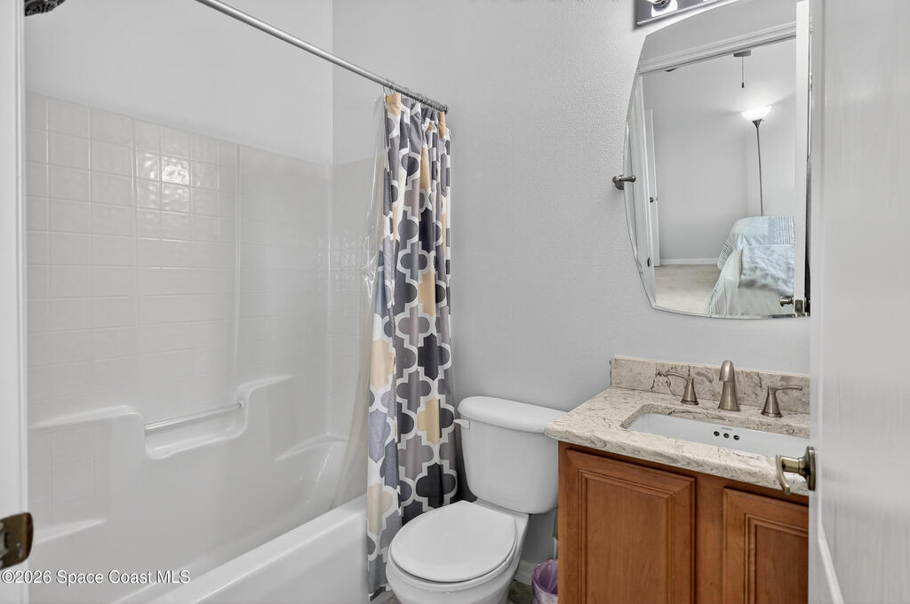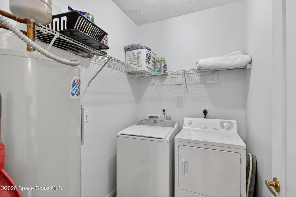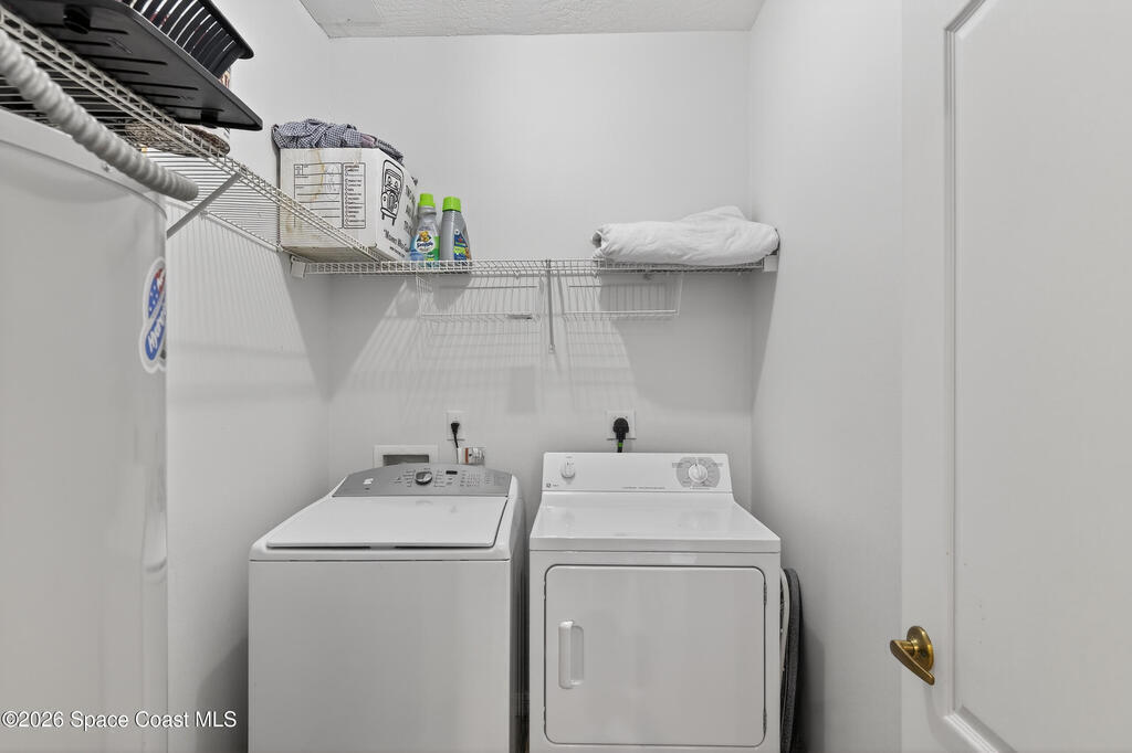 Beautifully maintained two-story townhome in gated Oceanside Village with open-concept living area and tile flooring throughout main living areas. Features include a screened-in rear patio with clubhouse view, detached garage, and guest parking. The home offers a modern kitchen with quartz countertops and updated bathroom finishes. Located in a gated community with resort-style amenities including pool, clubhouse, tennis courts, and playground, with HOA covering roof, exterior, landscaping, and insurance. Beachside location just minutes to the ocean with convenient access from both Eau Gallie Blvd and A1A. Close to restaurants and shopping including Texas Roadhouse, Chipotle, Starbucks, and Walmart. Currently the only available unit in Oceanside Village.