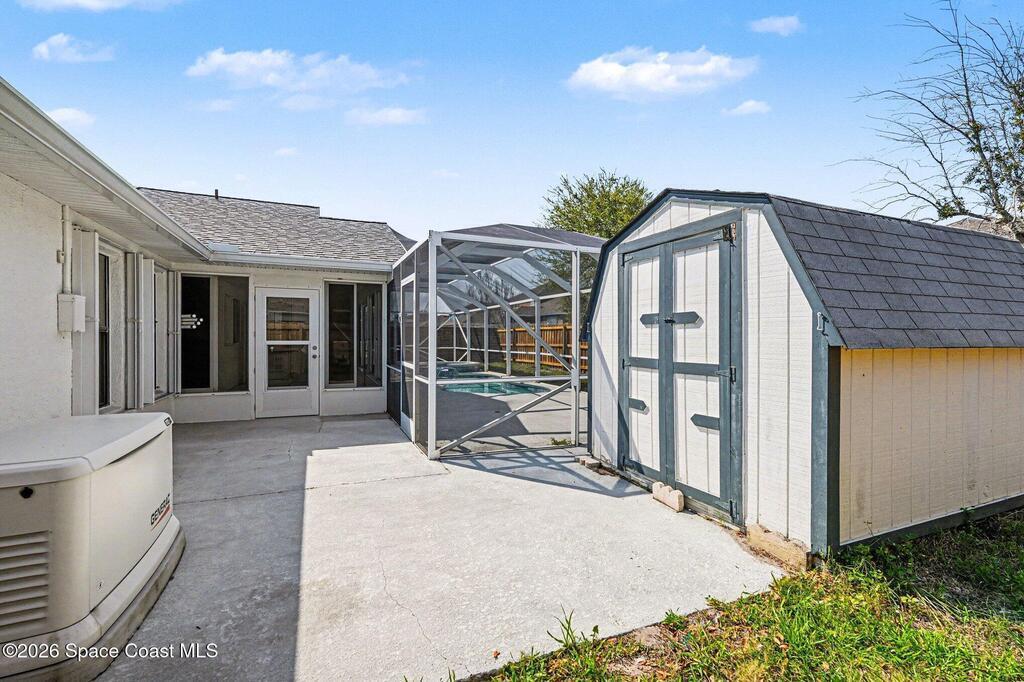 Nestled within a quiet enclave of just 54 homes, this well-built 3 bedroom/ 2bath 1994 residence offers lasting quality in a highly desirable setting. Lovingly maintained by its original owner, the home features a family friendly split bedroom floor plan with solid construction and thoughtful updates, including partial (Renewal by Anderson) window replacement (2025), new fencing (2023), a GENERAC home generator (2022), and a heated pool (2016). With a few cosmetic updates, it presents an excellent opportunity to personalize while enjoying major improvements already in place.Ideally located by Wickham Park, a 391 acre recreational destination with amazing bike trails, fishing lakes, 1.3 mile ped way, art & craft shows, dog park (small & big) and much more. The community benefits from a naturally buffered, low-congestion setting. Just minutes from shopping, major roadways, and 12 minutes to the beach. This home offers the perfect balance of tranquility, convenience and coastal living.