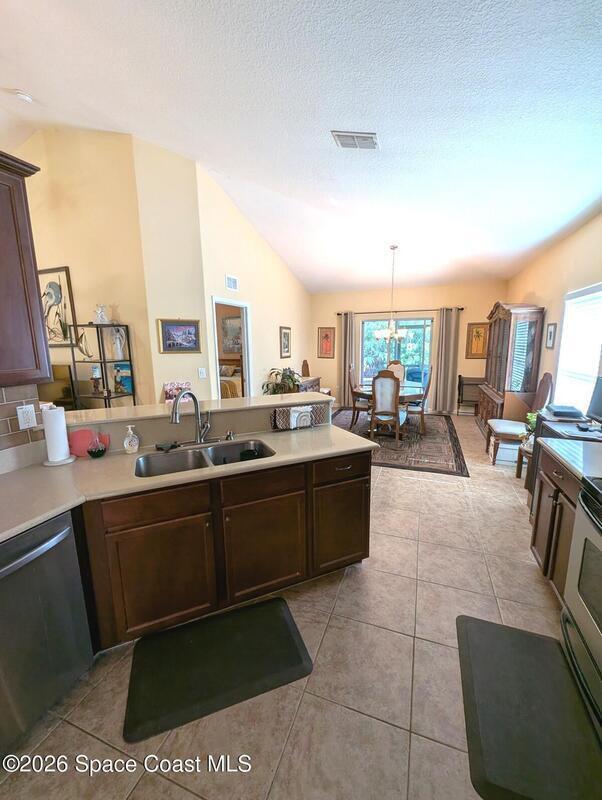 You will absolutely fall in love with the location of this 4 bedroom 2 bath home. The rear screened porch is the perfect place to sit with morning coffee or a glass of wine after a hectic workday and listen to the birds chirping from the preserve area behind your new home. What a great way to start and end the day! The home features 4 bedrooms, 2 baths, vaulted ceilings throughout the living areas. Kitchen is nicely appointed with tall cabinets with crown molding, solid surface countertops and stainless steel appliances. There was an extra pantry added for the chef to store all those kitchen gadgets! Primary bedroom is at the rear of the house, and is quite spacious. The en-suite bathroom has a large vanity with double sinks, separate soaking tub and shower, and a large walk in closet. 3 guest bedroom are generous in size with nice closet space. Roof is less than 2 years old. Located between New Haven and Palm Bay Rd. so it is just minutes to EVERYTHING you could ever want!