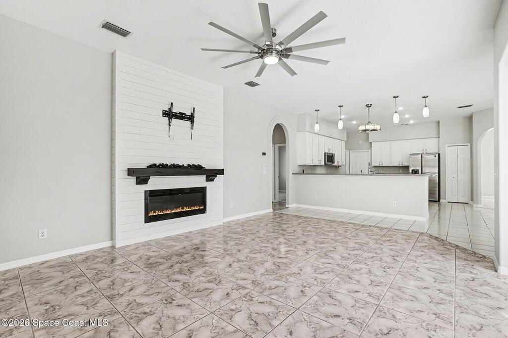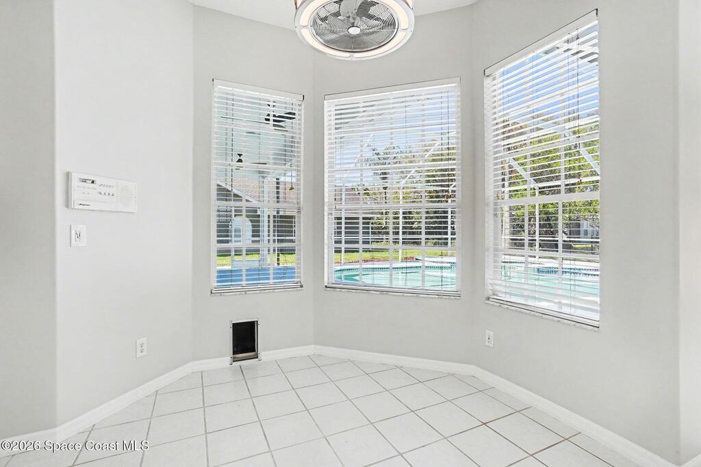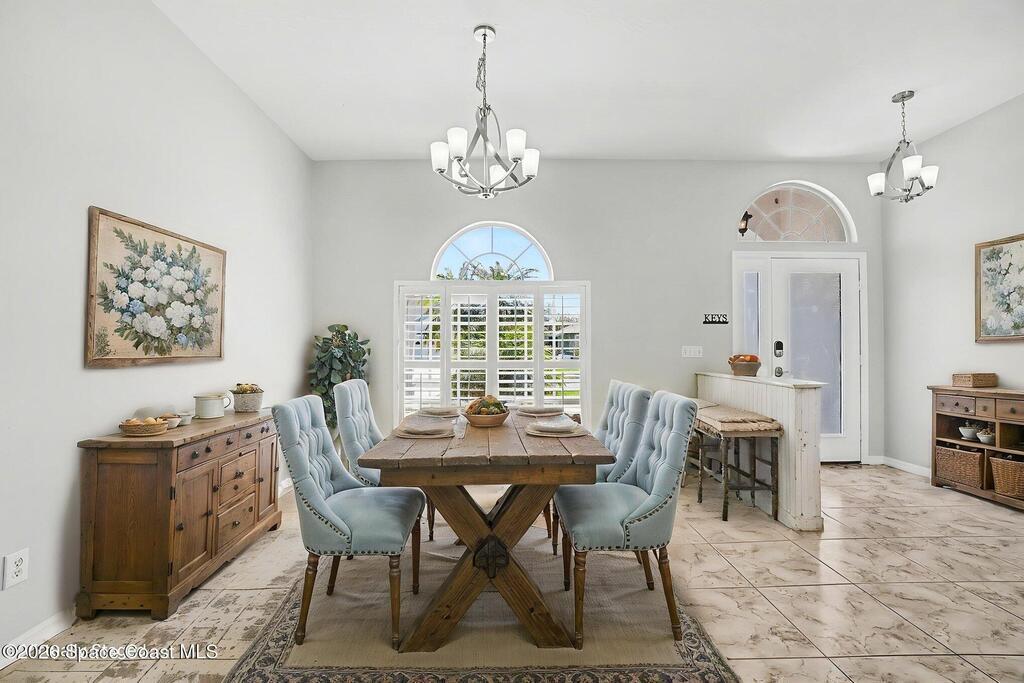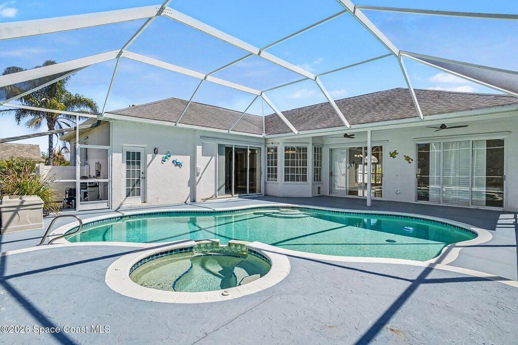 Move-in ready and beautifully maintained, this bright and open 4 bedroom 3 bath pool home features a desirable split floor plan and thoughtful upgrades throughout. Freshly painted inside. This home offers formal living room and dining room plus spacious family room with electric fireplace all overlooking a tropical, gas heated pool and spa perfect for entertaining. The gourmet kitchen boasts a large working island, abundant storage and stainless appliances, large nook and desk area. An oversized laundry room adds convenience, while plantation shutters enhance style and privacy. This spacious primary suite includes dual walk in closets, double sinks, a garden tub and walk in shower. Complete with a 3 car garage and hurricane shutters. Ideally located close to everything Viera has to offer, shopping, dining, Patrick Space Force Base, and less than an hour to Orlando International Airport and Disney. Don't miss making this stunning home your own! roof 2013 AC 2018