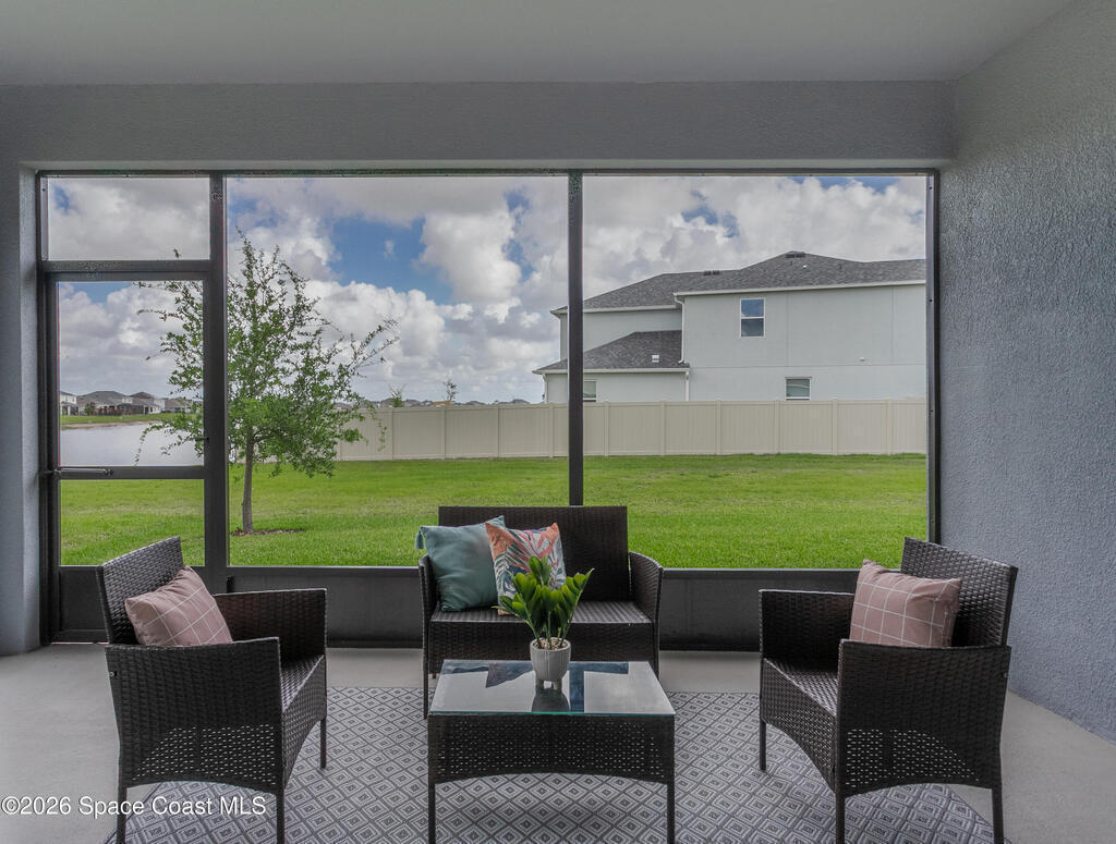 Why wait when you can move now & NO CDD FEES! This never-before-lived-in former model home offers a thoughtfully curated living experience conveniently situated near a beautiful community pool, playground, mailboxes, & walking distance of a brand-new Publix. Upon entering, you will be greeted by 9'4'' tray ceilings, elegant crown molding complemented by tile flooring throughout the main areas of the home, creating a spacious & refined atmosphere. The expansive kitchen features a generously sized island with tons of cabinet storage, seamlessly connecting to the great room & dining area, ideal for relaxation & entertaining guests. The living space extends to a screened lanai & a large backyard that offers tranquil views of the water. The primary bedroom features an impressive walk-in closet & a luxurious master bathroom with a soaking tub & large deluxe shower. My favorite feature, 4th bedroom includes an en suite bathroom, making it an ideal guest suite or a private bedroom. A must see