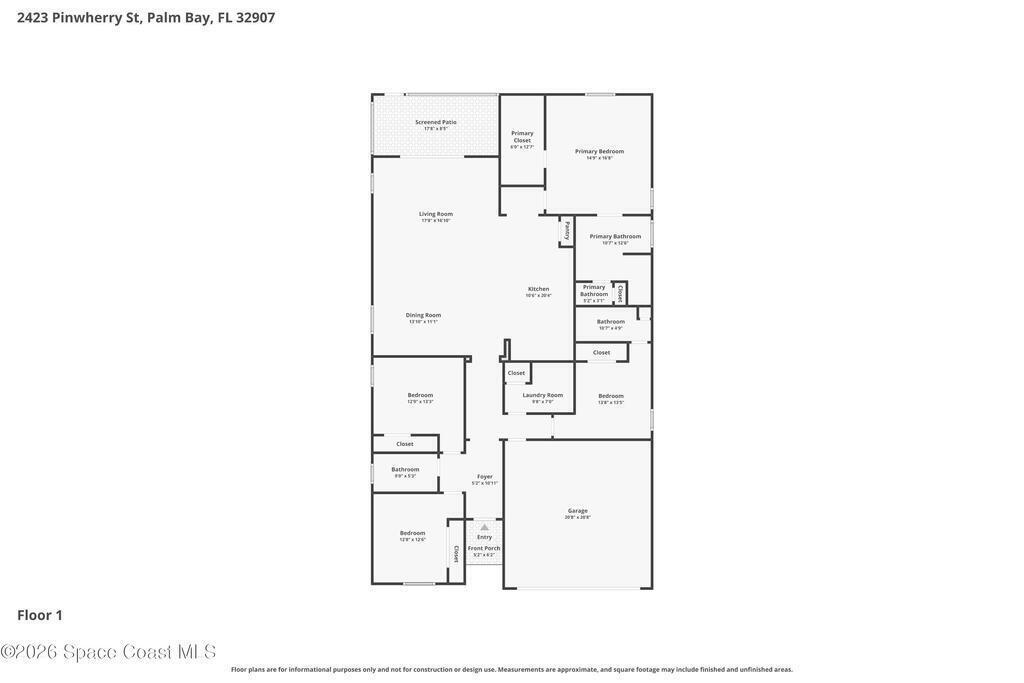 Property Listing Details for 2423 Pinwherry Street, Palm Bay, FL 32907