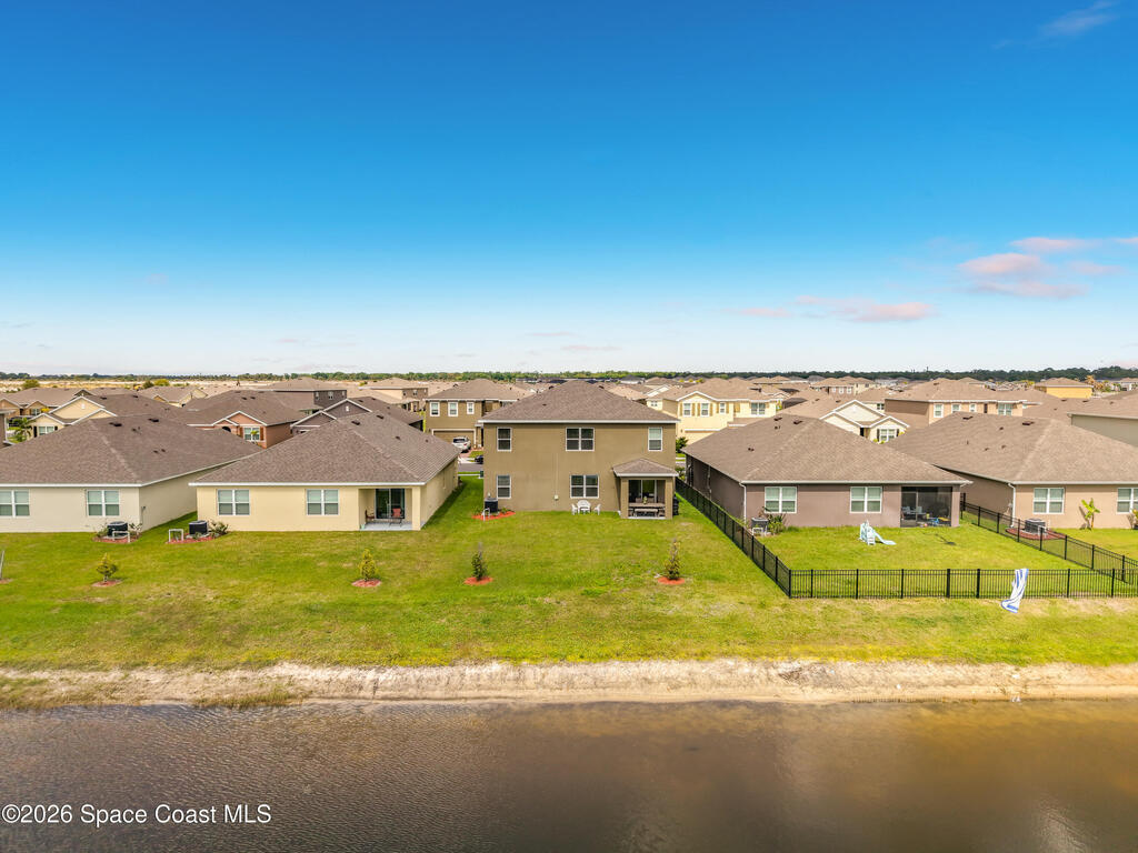Welcome to 905 Dugan Circle SE in Palm Bay, located in the up-and-coming NEW Cypress Bay West community. Why wait to build when you can move right into this constructed 2024 2-STORY BLOCK WATERFRONT HOME offering an impressive 3,088 square feet under roof! The Hayden floorplan features 5 bedrooms, 3 full bathrooms, an additional family room, and a versatile second-story loft, perfect for a home office, media room, or play space. Designed for both comfort and functionality, the open-concept layout provides seamless flow between the living, dining, and kitchen areas, making it ideal for everyday living and entertaining. The kitchen provides granite counters, stainless steel appliances, a walk-in pantry and a breakfast bar perfect for busy mornings. Downstairs there is one bedroom and a full bathroom which offers space for guests. The second floor offers 4 bedrooms including a spacious primary retreat with double walk-in closets and a modern bathroom including a large walk-in shower.