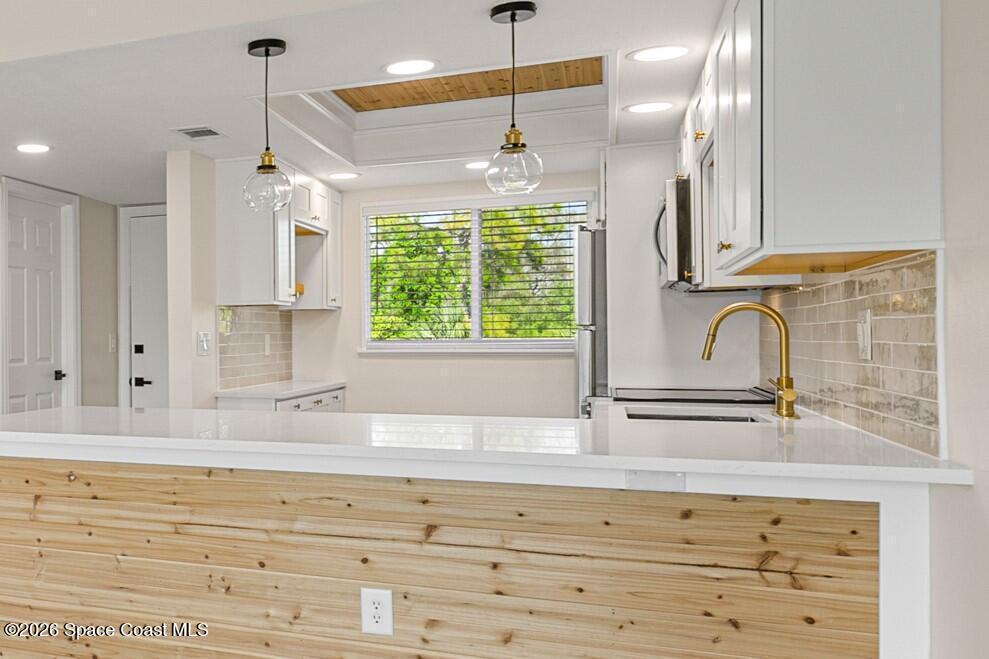 Come experience effortless living in this beautifully renovated condo showcasing modern organic design and contemporary luxe finishes. Every detail has been updated for a seamless, move-in-ready experience, including new windows, sliding glass door, and a BRAND NEW HVAC. The open, light-filled layout features wood-look tile flooring throughout, smooth ceilings (no popcorn), and remote-controlled ceiling fans. The kitchen shines with a quartz peninsula, all-new stainless steel appliances, soft-close cabinetry, and a WiFi-enabled range. The spacious bedroom offers two large closets, including a walk-in. Enjoy sunset views and breezes from the top-floor screened balcony. Elevator access, a community pool, clubhouse, assigned parking, a park-like dog walking area, and a private kayak launch providing direct access to the Eau Gallie River, Ballard Park, and the Indian River complete this refined, low-maintenance property. HOA includes water and internet/cable. No rentals; limit 1 dog or cat