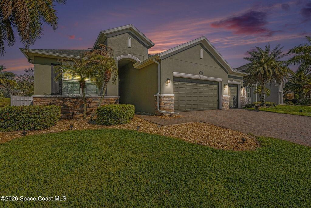 Assumable VA loan at an incredible 2.25% interest rate. A rare opportunity in today's market you don't want to miss.Beautifully maintained 3-bedroom, 3 full bath, 2 half bath home with a versatile flex room and a 3-car garage, featuring a stunning screened-in pool and spa perfect for Florida living. This spacious open floor plan offers tile throughout the main areas, high ceilings, and a bright, inviting living space ideal for entertaining. The gourmet kitchen showcases granite countertops, ample cabinetry, and a large breakfast bar overlooking the family room. The primary suite is a true retreat with tray ceilings, a spa-like bath, soaking tub, and walk-in shower. The flex room is perfect for a home office, gym, or guest space. Step outside to your private backyard oasis with a covered lanai, summer kitchen area, and resort-style pool, all fully screened for year-round enjoyment. Conveniently located, this home blends comfort, functionality, and the Florida lifestyle.