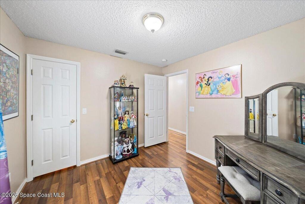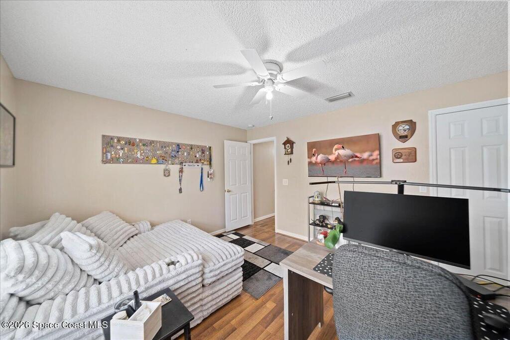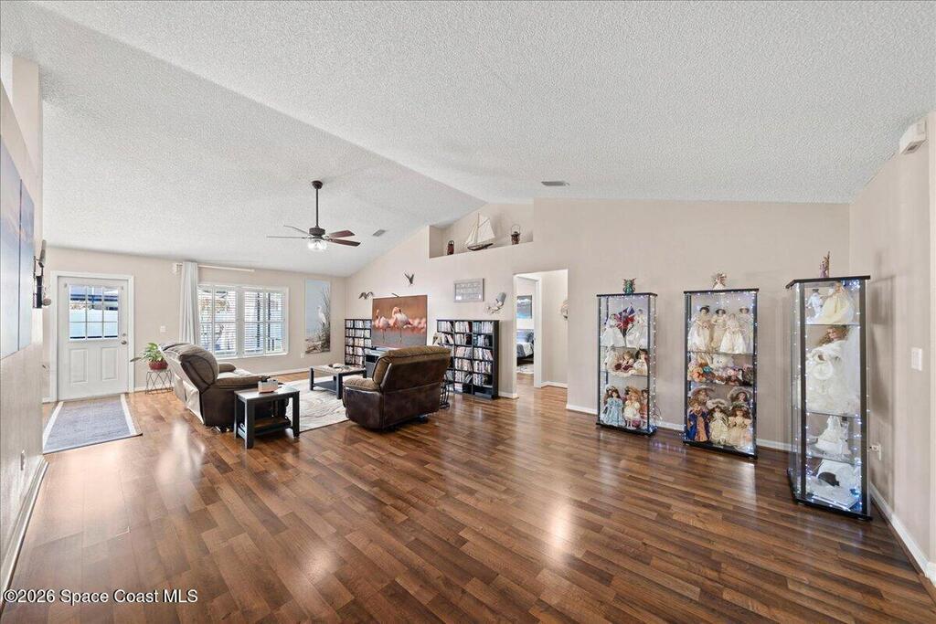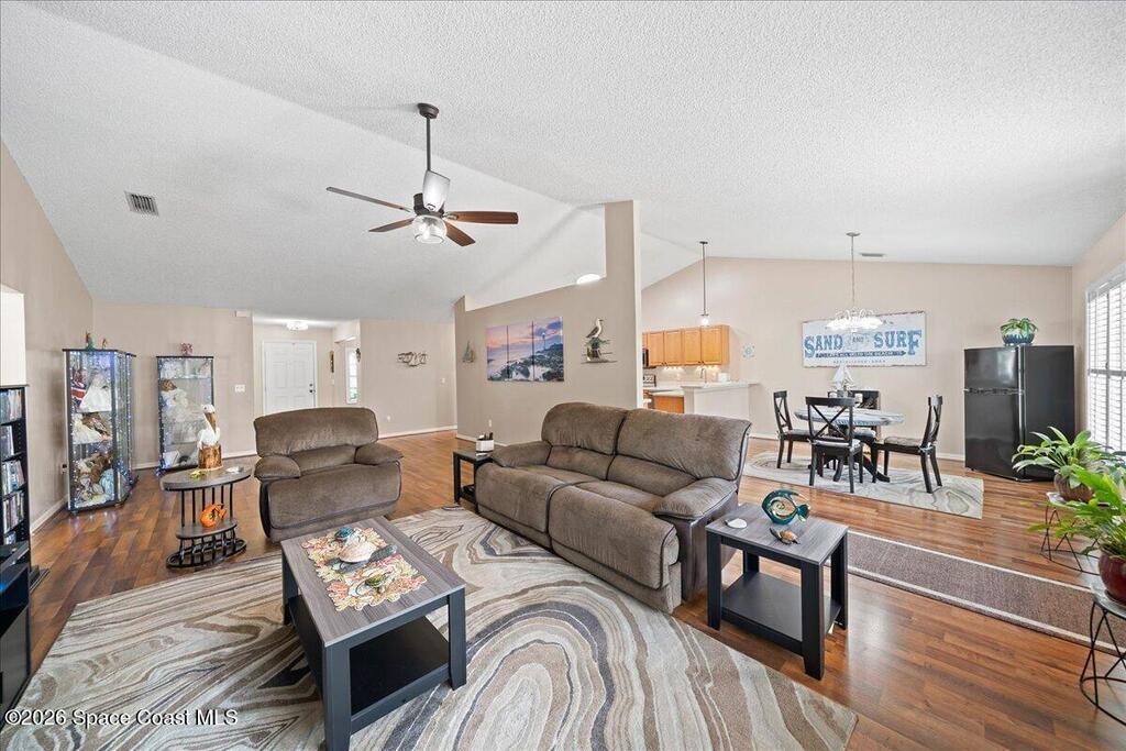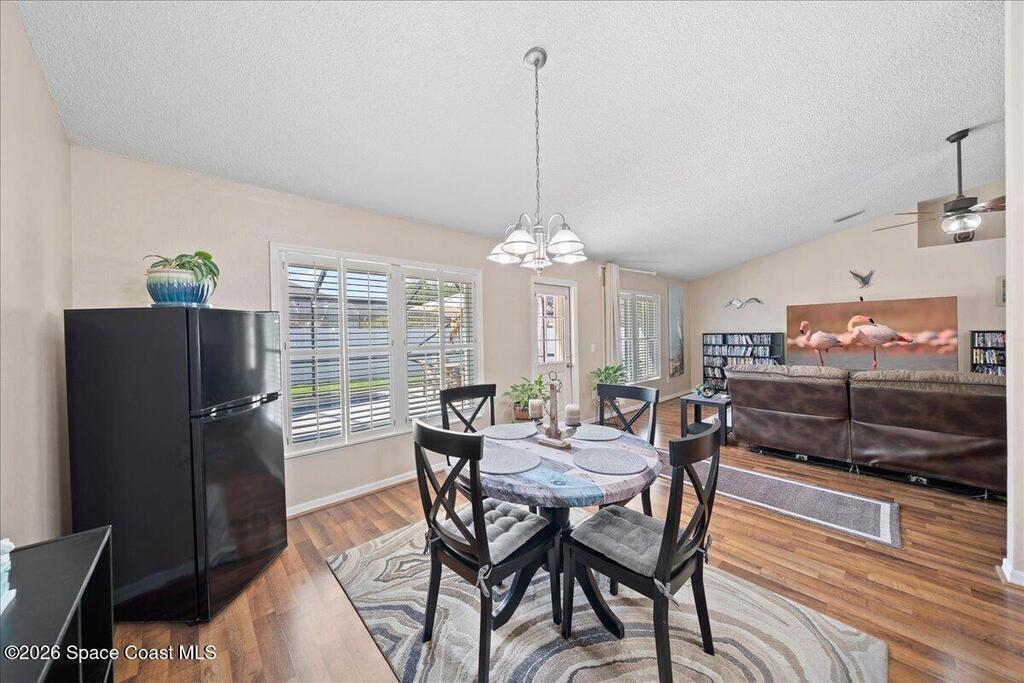 VALUE PRICED POOL HOME in Oak Grove / West Melbourne, NOW FOR SALE! This ''Move in Ready'' 4 bedroom + OFFICE, 2 bath, 2 car garage home with a beautiful in-ground / screened pool. Featuring a great floor-plan with Formal Dining & Office at entry, a large family room with vaulted ceiling & decorative plant ledge. The breakfast nook is open to the kitchen w/ solid wood cabinets, Corian countertops, pantry, & step up breakfast bar too. Enjoy a split bedroom plan w/ large owners suite and deluxe owners bathroom with soaking tub, walk in shower, dual sink vanity, 2 walk in closets & separate water closet. New updates throughout: wood laminate flooring, interior painting, New roof & gutters in 2023, new windows 2025, hurricane acordia shutters, 2021 TRANE HVAC, contemporary exterior lighting, & new pool screen & resurfacing in 2022. Fully fenced in yard to enjoy your private pool oasis. Other: ceiling fans, plantation shutters in main areas, sprinkler system, Ring & security cameras