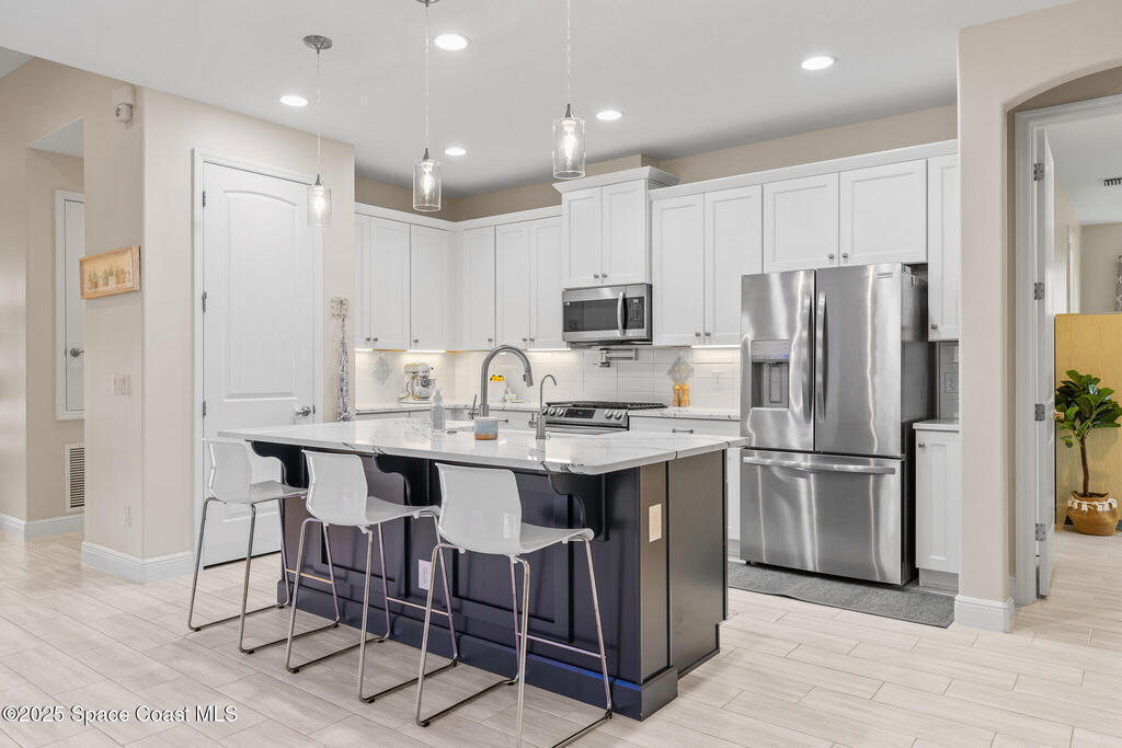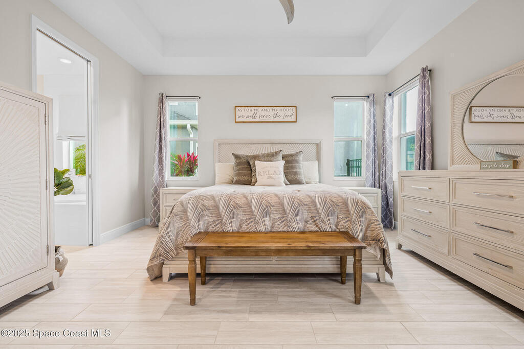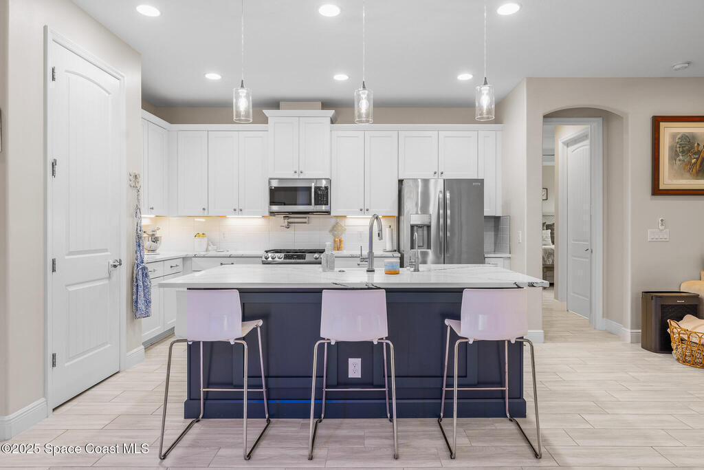 Step into refined modern living in this impeccably maintained 2023-built 4-bedroom, 3.5-bath residence located in the highly desirable Sendero Cove. Thoughtfully updated and move-in ready, the bright, open layout features 8-foot doors, wood-look tile flooring, brand-new custom window treatments, and a fresh full interior paint completed in July.The chef's kitchen is a standout, showcasing quartz countertops, a tile backsplash, stainless steel appliances, a gas range with pot filler, and an oversized island--ideal for entertaining and everyday gatherings. The luxurious primary suite offers a private retreat with a tray ceiling, dual walk-in closets, and a spa-inspired bath complete with double vanities, a soaking tub, and a spacious walk-in shower.Guests will appreciate the privacy of their own ensuite bedroom. Triple sliding glass doors open to an expansive L-shaped screened lanai with three ceiling fans and pre-plumbing for gas, electric, and water--perfectly set up