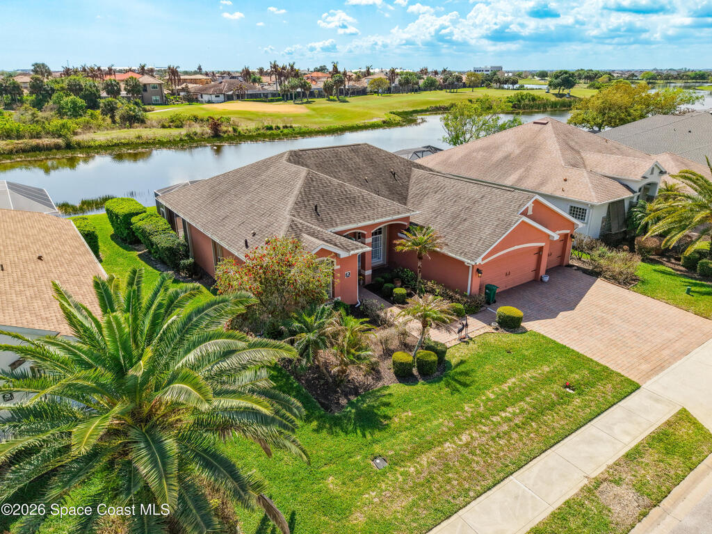Welcome to resort-style living in the highly desirable 55+ active adult gated community of Heritage Isle in the heart of Viera! This beautifully maintained home offers the perfect blend of comfort, elegance, and scenic surroundings. Situated on a peaceful waterfront lot with stunning golf course views, enjoy breathtaking afternoon sunsets right from your own backyard oasis. Recent updates add even more value and peace of mind, including a new HVAC system (2025), luxury laminate flooring in the bedrooms (2025), and a garage epoxy-coated floor (2024). Inside, you'll find soaring ceilings and an abundance of natural light flowing throughout the open-concept layout. The spacious kitchen features granite countertops, solid wood cabinetry, and overlooks the main living areas, ideal for both everyday living and entertaining. Designed with a desirable split floor plan, this home offers 4 bedrooms and 3 full bathrooms, providing privacy and flexibility. The common area includes a large living