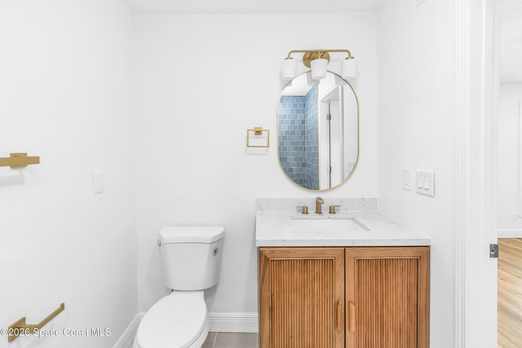 A beautifully renovated home with designer finishes and an oversized lot is now available on Florida's iconic Space Coast. This 3 bedroom, 2 bath property has been fully updated from top to bottom, offering a perfect blend of modern style, functionality, and long-term value. Step inside to a bright open layout filled with natural light and a open airy living space. Brand new flooring flows throughout the home leading into a stunning kitchen featuring white oak cabinetry with soft-close hinges, elegant Calacatta quartz countertops and brushed gold accents that create a clean upscale look. The open-concept design makes the home ideal for both everyday living and entertaining. Both bathrooms have been fully renovated with a modern yet practical design providing a fresh move-in ready feel throughout the home. The home is situated on .24 acre that opens the opportunity to expand, create an outdoor oasis or simply enjoy extra space and privacy. Don't miss out! Schedule a showing today!