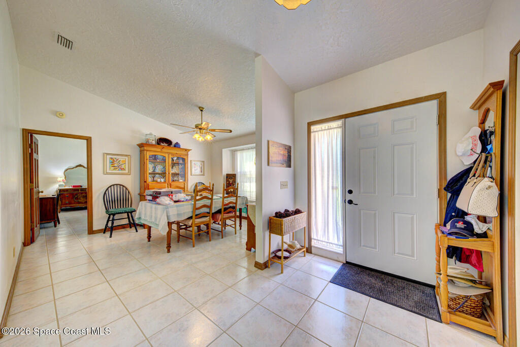 Well Maintained, Custom Built, Original Owners, 3 Bedroom, 2 Bath ,2 Car Garage, 1752 sqft under air (to include enclosed porch), Split Plan Home on 1 acre located in Canaveral Groves. This home offers cathedral ceilings, tile flooring through out, eat in kitchen with breakfast nook, spacious living room, formal dining room, large primary suite offers walk-in closet & walk-in shower, guest bathroom has bath tub/shower combo, enclosed porch under air (10'x28'). Roof was replaced in 2019, HVAC system replaced in 2020, Septic system recently pumped (March 2026). There is NO HOA and this property is not in a flood zone. There is plenty of room to park a motorhome, trailer, RV, boat and more. This home is worth taking a look at...