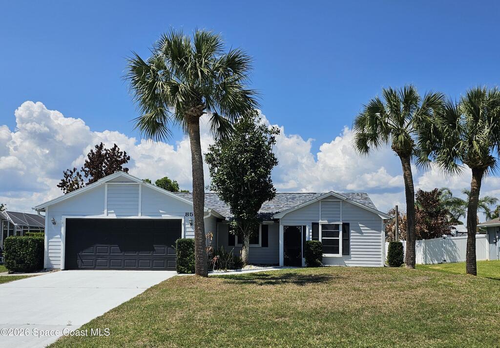 This charming 3-bedroom, 2-bath, 2-car garage pool home is nestled on a quiet cul-de-sac, but has easy access to I-95 and US Hwy1. Major 2023 updates include a NEW ROOF, AC system, and WATER HEATER. Enjoy beautiful wood laminate flooring throughout the main living areas and newer carpeting in the guest bedrooms. The thoughtful split floor plan offers privacy for all. Step outside to a covered patio overlooking your sparkling pool--the perfect spot to relax and entertain. This is a must-see home! It's easy to show.