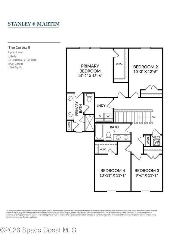 Welcome to the Cortez II, a two-story single-family home offering 1,876 sq. ft. of living space with 4 bedrooms and 2.5 baths. The open-concept main level features a modern kitchen with a large center island and seating, flowing into the great room and dining area with access to a rear patio. Upstairs includes a spacious primary suite with walk-in closet and en-suite bath with dual vanities and linen closet. Three additional bedrooms, a loft, full bath with dual sinks, and a laundry room with sink complete the second floor. Functional layout ideal for everyday living and entertaining. *Photos are from a similar home.
