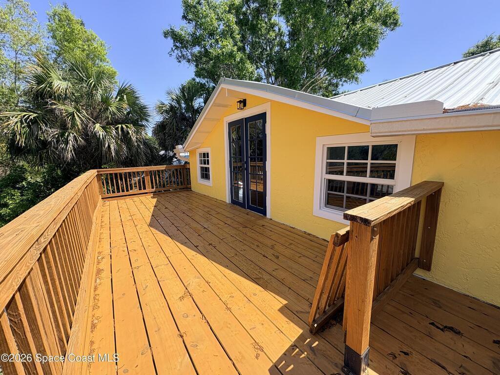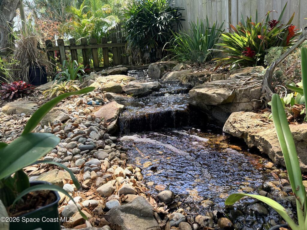 Charming 1920 coastal-style detached home with river views and no HOA, minutes from the Indian River Lagoon and beaches. Offering 2 beds, 2.5 baths and 2,103 sqft, this unique property features a 2020 metal roof and A/C, impact windows and doors, and whole-house generator. Bright, inviting exterior with spacious balcony and updated kitchen with leather-finish quantum quartz countertops and island with soft close cabinets. Private, tree-lined patio with outdoor shower, picnic area, and a professionally designed pondless waterfall. Ideal as a primary home, retreat, or investment.