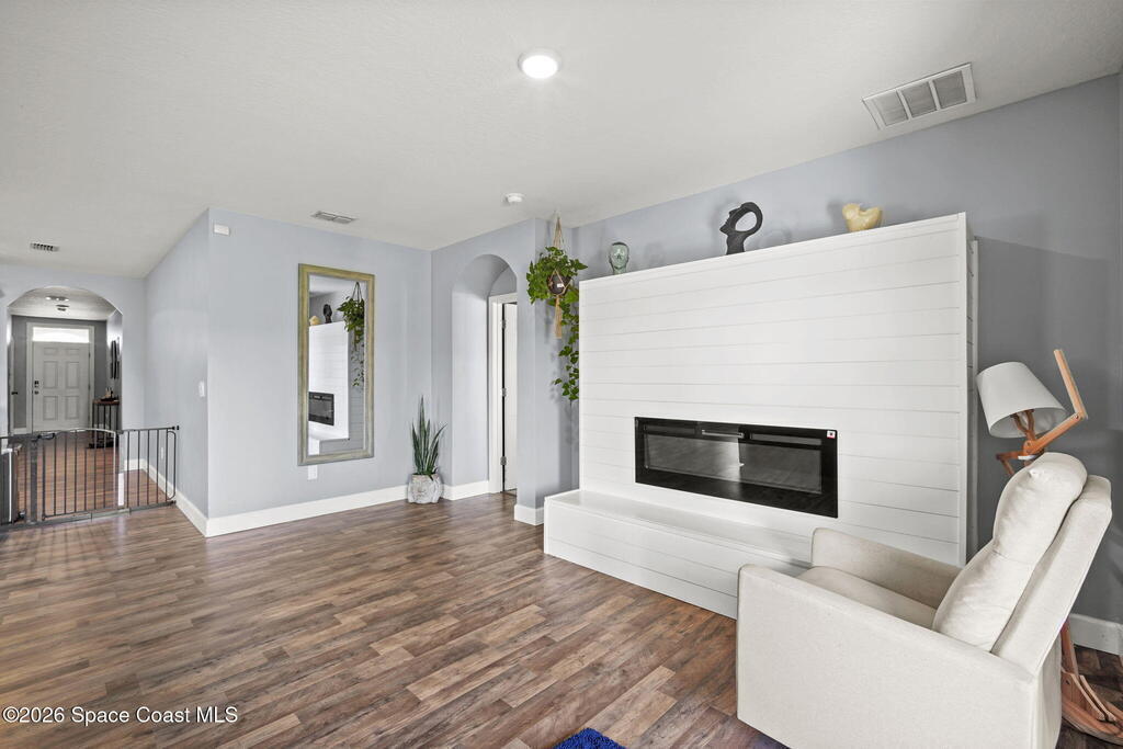 Welcome to this beautifully maintained, move in-ready residence offering the perfect blend of modern design, functionality, and everyday comfort. From the moment you arrive, the paved driveway and clean, well kept exterior set the tone for what awaits inside.Step through the front entry into a thoughtfully designed open concept layout featuring durable vinyl flooring, neutral tones, and an abundance of natural light throughout. The expansive living area is anchored by a stunning custom fireplace feature wall, creating a true focal point and an ideal space for both relaxing and entertaining.The kitchen seamlessly connects to the main living space and is equipped with granite countertops, white cabinetry, stainless steel appliances, and a large center island with bar seating, perfect for hosting or casual dining. The open flow allows for effortless interaction between the kitchen, dining, and living areas.The primary suite offers a private retreat with ample space,
