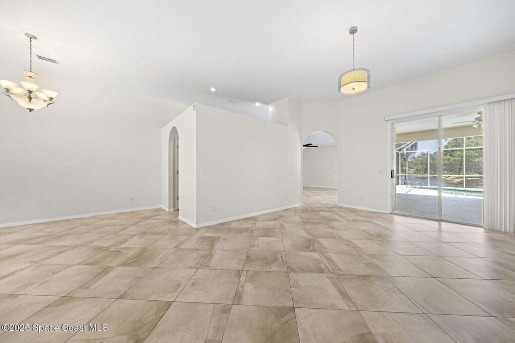 Spacious 5BR/3BA Lakefront Pool Home. Enjoy resort-style living in this stunning lakefront retreat! Featuring an open, split floor plan with soaring 11-ft ceilings and tile throughout, this home offers both elegance and comfort. The kitchen boasts granite countertops, stainless steel appliances, a breakfast bar, and built-in desk. Two inviting living areas provide plenty of space for entertaining. The primary suite includes a walk-in closet and spa-style bath, and a sitting room overlooking the pond, while a Jack & Jill bath connects two additional bedrooms. The 5th bedroom doubles perfectly as a home office. Relax on the screened patio overlooking the sparkling pool and serene lake. Lawn and pool care included for worry-free living! Available Mid to late April.