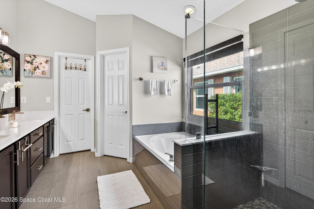This exceptional LAKEFRONT/ POOL Suntree home is now AVAILABLE! Newly installed impact windows & slides , this property boasts a range of exciting updates, including new light fixtures, flooring, and bathrooms brand new exterior paint . The impressive salt system pool and spa, complete with color-changing lights and a classic paver deck, is the perfect spot to unwind, while the pool heater ensures year-round enjoyment. The stunning water view and beautifully appointed kitchen, featuring granite countertops, high-end appliances, and a gorgeous tile backsplash, are sure to delight. The primary bedroom suite has been thoughtfully updated with double vanities, stylish tile, and a spacious walk-in closet. Roof installed in 2016 and a charming paver driveway, this home is truly move-in ready. Its prime location, just 15 minutes from PAFB and the beach, and surrounded by golf courses. Ammenities includes: club house, tennis courts, playground ,gym and basketball court!