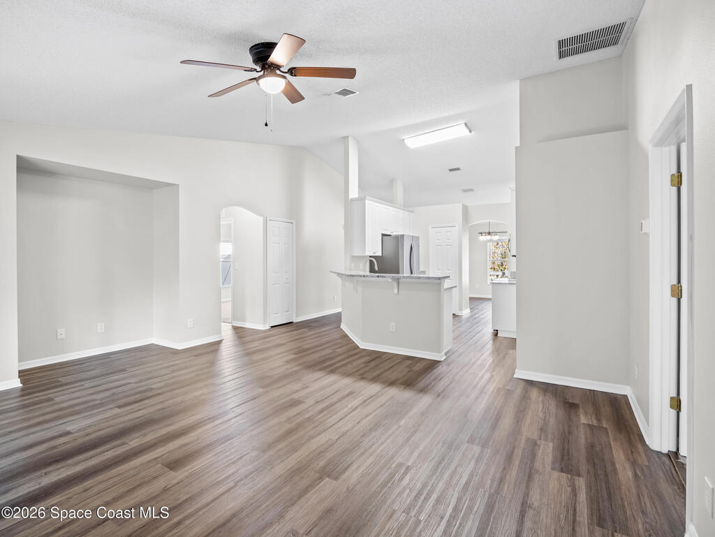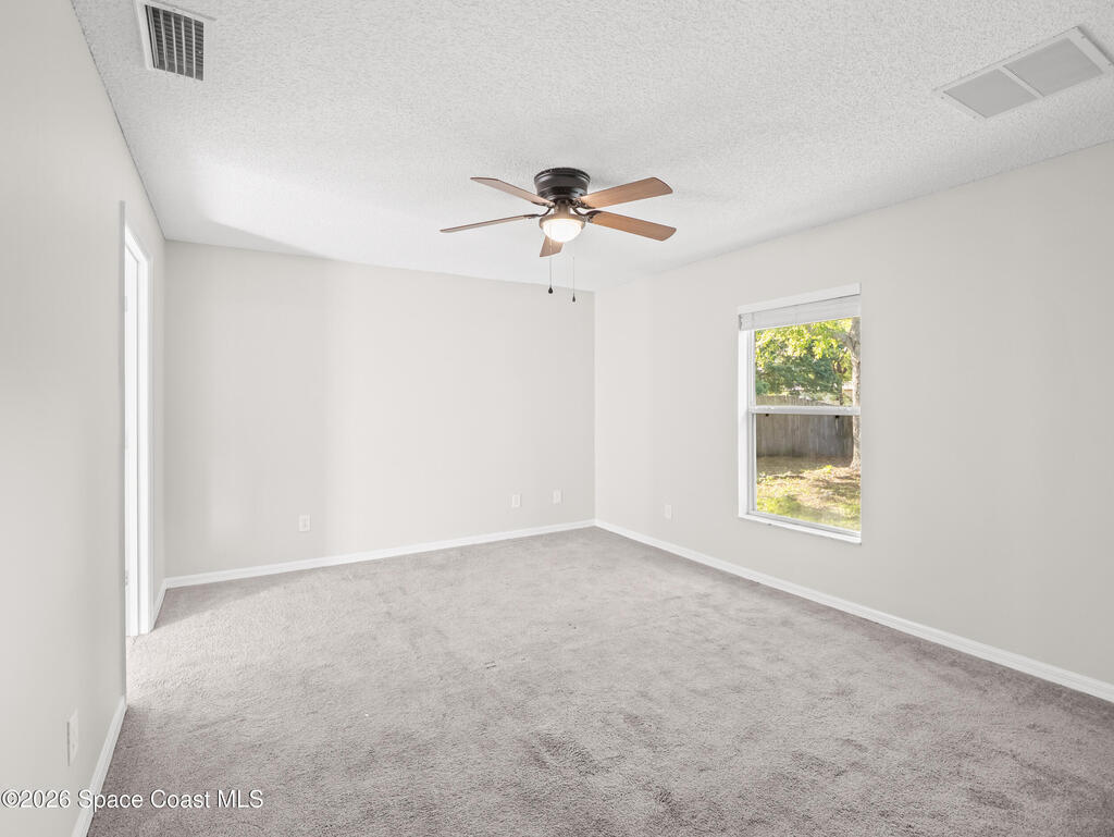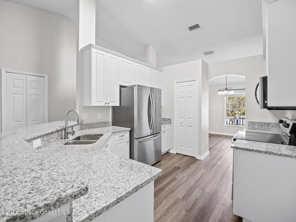 This 3bed/2bath home, located in Cypress Woods community, has a front porch for relaxing, and a fenced backyard with covered lanai. Home has just been painted on the inside. The interior features vaulted ceilings, a split floor plan, newer lighting, and ceiling fans. The living areas have vinyl plank flooring and NEW carpet will be installed before closing. There is a laundry room for convenience. The updated kitchen features newer cabinetry, granite countertops with a wrap around breakfast bar, stainless steel appliances and a pantry .The master suite has a ceiling fan and walk-in closet, and the bathroom has dual sinks, a tub and shower. This home has a newer water heater and A/C. The community has a playground and is located near shopping, entertainment, the beaches, Kennedy Space Center, and numerous technology companies. Located close to I-95, US-1, and the Beachline. NEW ROOF IN 2023!!!