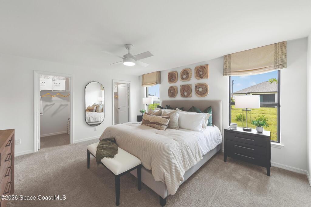 NEW CONSTRUCTION WITH WARRANTY! Estimated delivery June 2026. The St. Augustine blends indoor and outdoor living with a welcoming covered front porch, expansive covered lanai, and a bright, open floor plan. A vaulted ceiling enhances the main living area, connecting the dining room with double windows, kitchen with freestanding island and pantry, and a spacious Great Room with a wall of sliding glass doors for abundant natural light. The split-bedroom layout offers a private primary suite with two walk-in closets and a bath featuring a dual-sink vanity, large linen closet, and tiled shower. Three additional bedrooms provide flexibility for guests, a home office, or hobby space. This home includes quartz countertops in the kitchen and baths, stainless steel appliances, plank tile flooring in main areas, hurricane-impact windows and doors, and more. Pictures, renderings, & virtual tour are of similar home & are used for display purposes only.