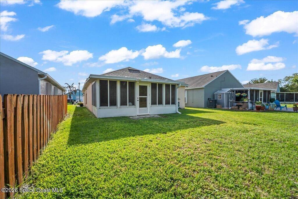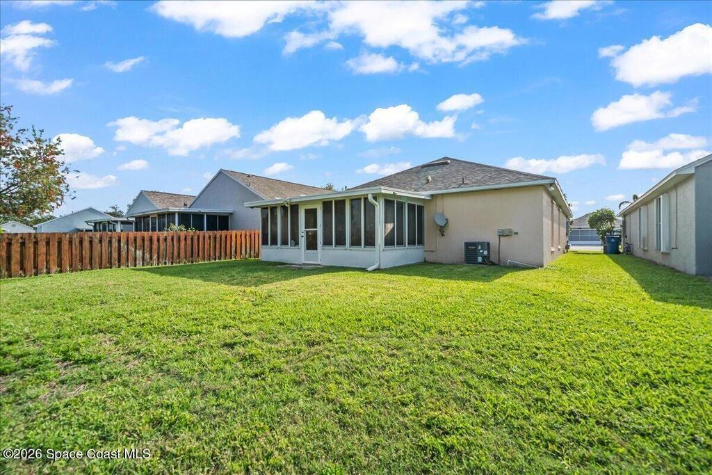Tucked away in a quiet neighborhood with no rear neighbors, this well-maintained home offers privacy and natural views. Inside, this 3 bedroom, two bathroom home features a bright and functional living space perfect for everyday living or entertaining and an updated kitchen with new granite countertops. Step out back into the Florida room, with screens and removable windows, to enjoy a peaceful wooded backdrop, with a small view of the pond--creating a relaxing outdoor setting that's hard to find at this price point. Catch breathtaking rocket launches from your own front yard, with views to the north over the tree line. Residents enjoy summers at the quiet community pool and are just a short stroll away from Turkey Creek Sanctuary. RV/Boat storage is also available for residents. Conveniently located near shopping, dining, and major roadways, this property is a strong value for buyers looking for both comfort and location.