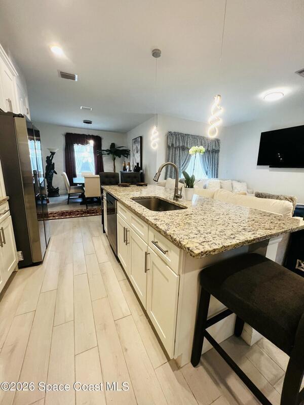Custom-built in 2022, this beautifully designed 3-bedroom, 2-bath home sits on a desirable 0.24-acre corner lot, offering both privacy and scenic surroundings. Thoughtfully upgraded throughout, the home features 42-inch white cabinetry with crown molding and soft-close drawers, along with granite countertops in the kitchen and both bathrooms.Fully furnished :furniture available for purchase separately.Enjoy a modern, cohesive look with plank-style wood-look tile flooring throughout. The bathrooms showcase upgraded tile work extending to the ceilings, creating a sleek and luxurious feel. The exterior is equally impressive with stacked stone accents that enhance curb appeal.The kitchen comes fully equipped with stainless steel appliances, making this home truly move-in ready. A perfect blend of style, quality, and location