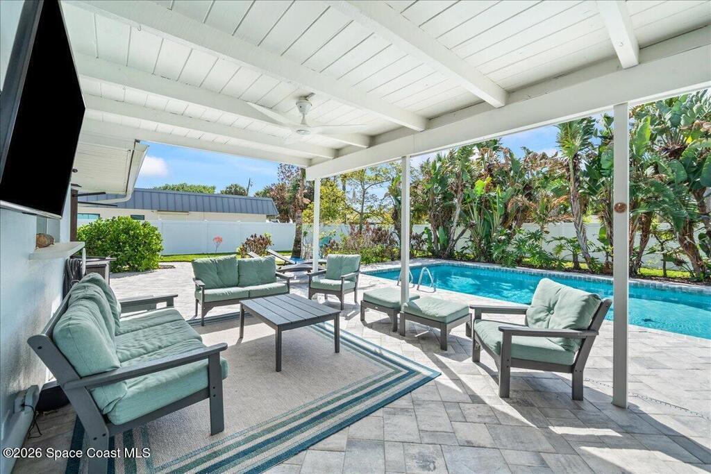Beautifully updated, 4 bed, concrete block, pool home in the heart of Melbourne Beach, close to 3 downtown areas, beautiful white sand beaches, a community pier, playgrounds, tennis/pickleball and much more! All impact rated windows and doors, whole home water purification system, tankless water heater & many more upgrades throughout this beachside gem ! You'll love the tropical oasis created within the spacious, fully fenced backyard, highlighted by a recently resurfaced, solar heated, salt water pool, fire pit & large covered lanai. RV/Boat storage area + a shed for all the toys! Don't sleep on this winner !!
