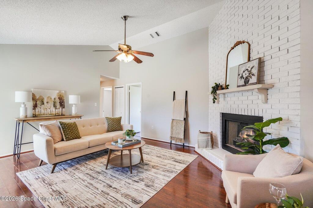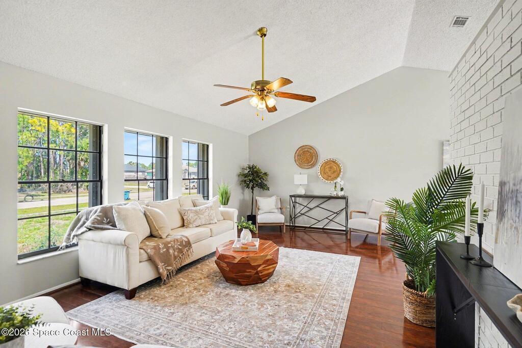 Step inside a home designed for both comfort and connection, where everyday living feels effortless. This spacious 4-bedroom, 2-bath home offers two inviting living areas, giving you the flexibility to relax, entertain, or create the perfect work-from-home space. The family room centers around a stunning brick wood-burning fireplace--perfect for cozy evenings--while the living room features a beautiful brick accent wall that adds warmth and character. The primary suite offers a private retreat with a beautifully updated shower (2023), the back yard is fully fenced, and major updates like a new roof (2022) provide added peace of mind. Ideally located near top schools, parks, and shopping in Palm Bay, this home blends convenience with charm. If you've been searching for a move-in ready home with space, style, and character--this is one you won't want to miss.