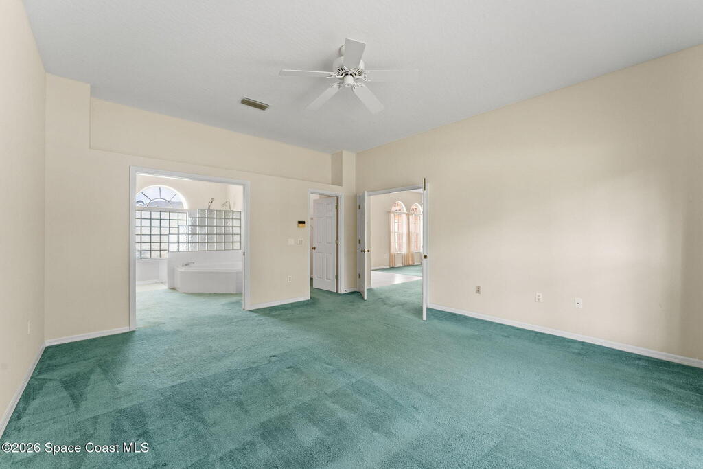 This West Melbourne lakefront home is ready for its next owner! Location is everything, and this one checks all of the boxes. Tucked away in the gated neighborhood of The Falls at Sheridan, this home blends the lifestyle of a quiet, calm neighborhood with the convenience of being 5 minutes from I-95 and 20 minutes to the beach. The mature trees, picturesque views of the lake, and over 1/3 of an acre combine for truly tranquil living. Boasting over 2200 square feet, two separate living spaces, and a split bedroom plan, this home has plenty of room to spread out! The oversized primary suite is complete with a view of the lake, a large walk in closet, and a bathroom with soaking tub and shower. Outside, a nearly 400 sq ft covered and screened back porch is a blank canvas, and is ready to be used to entertain or to relax! If you've been looking for a spacious home in West Melbourne, this could be the one for you!